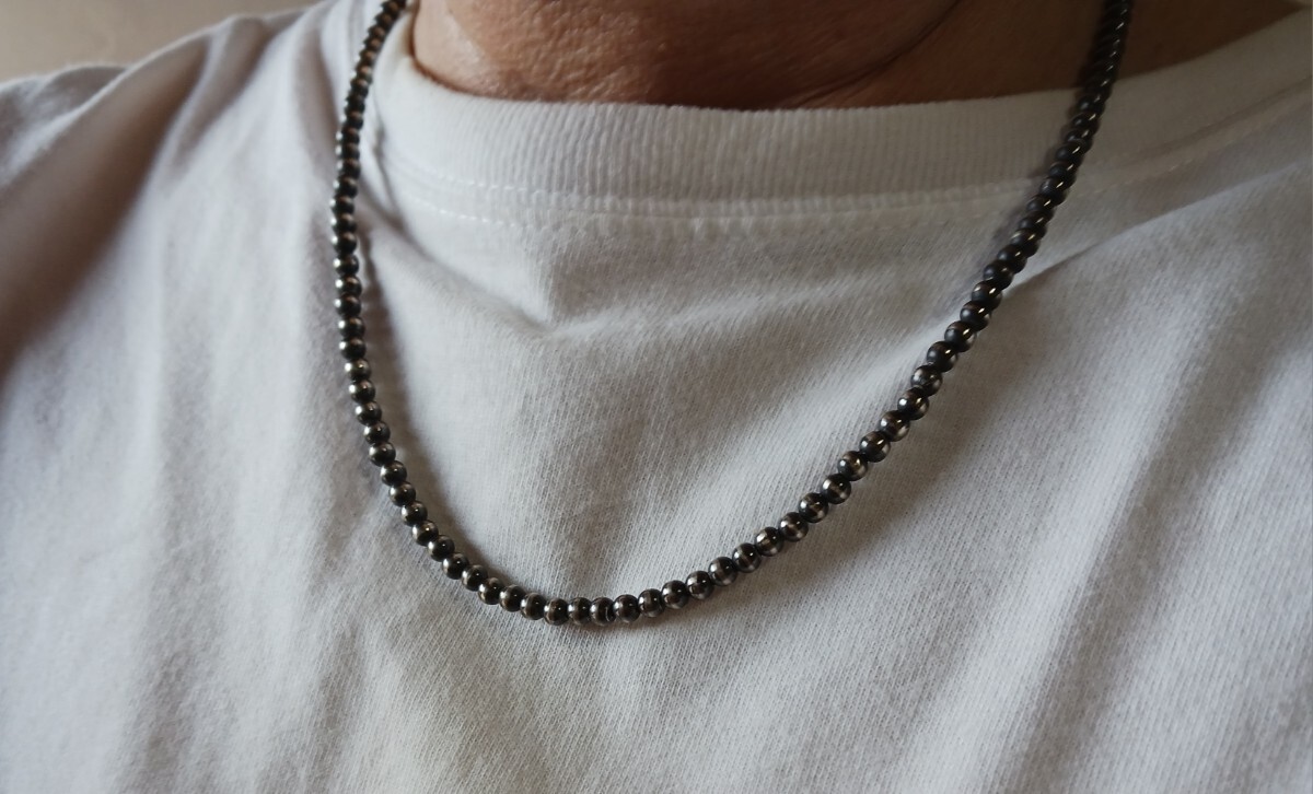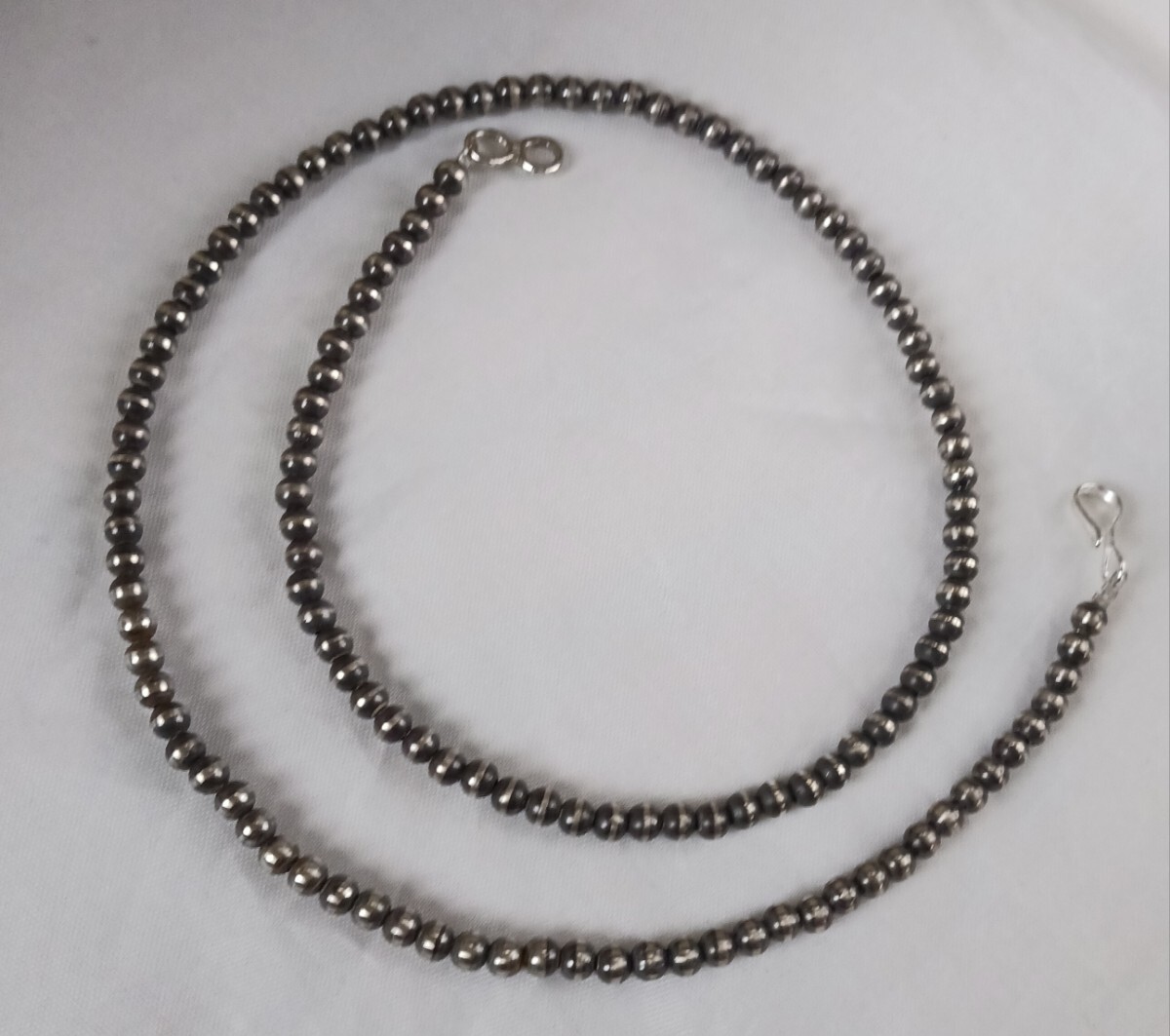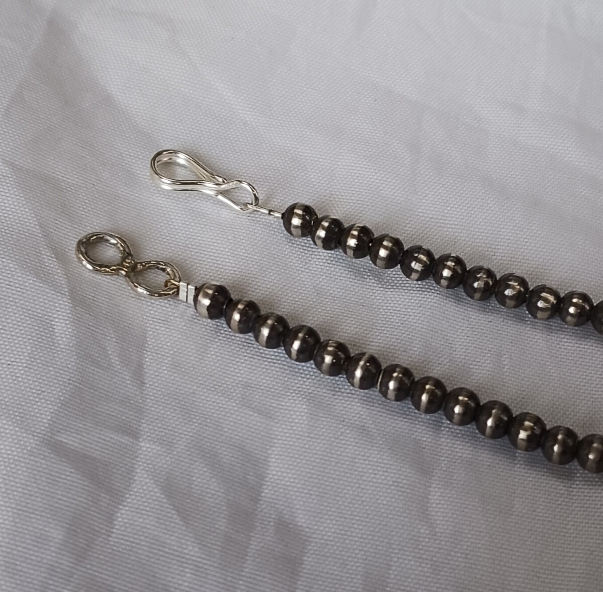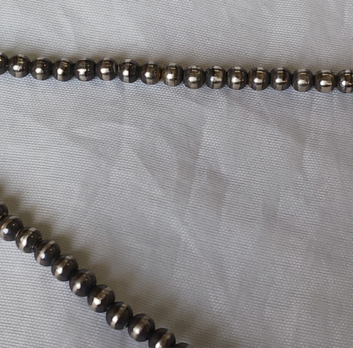 シルバー925のナバホパールネックレスです。ビーズのエイジングは個体により異なります。
