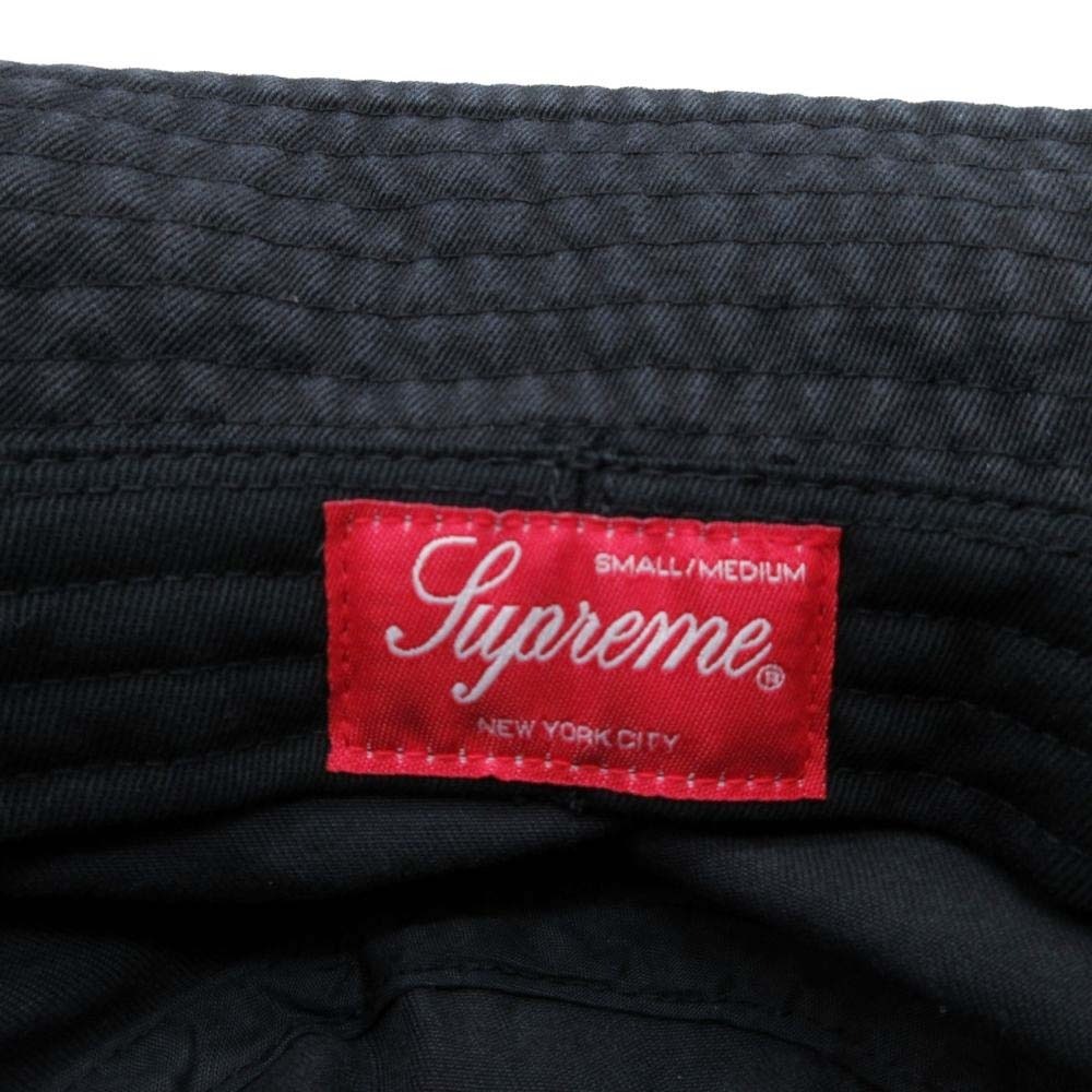美品 23ss Supreme シュプリーム Outline Crusher ロゴ 刺繍 コットン サファリ バケットハット 帽子 ブリム 黒 ブラック