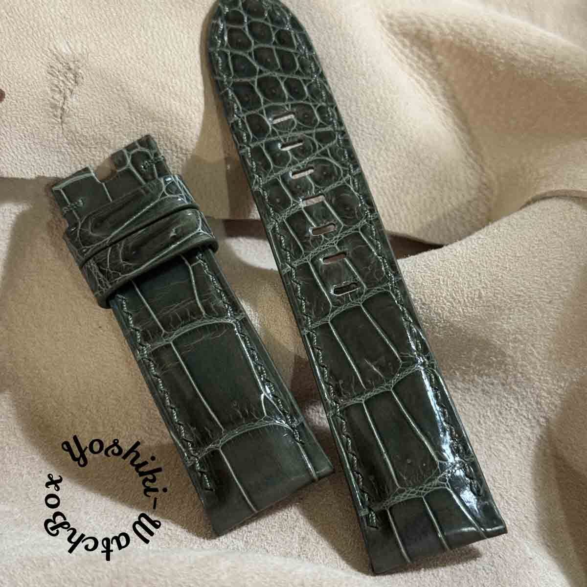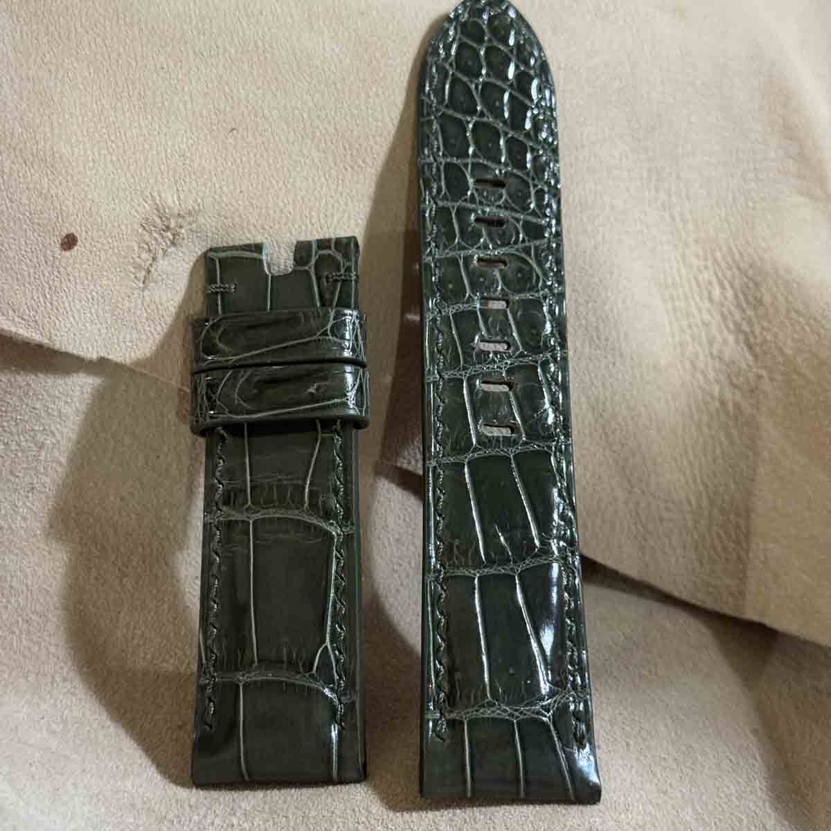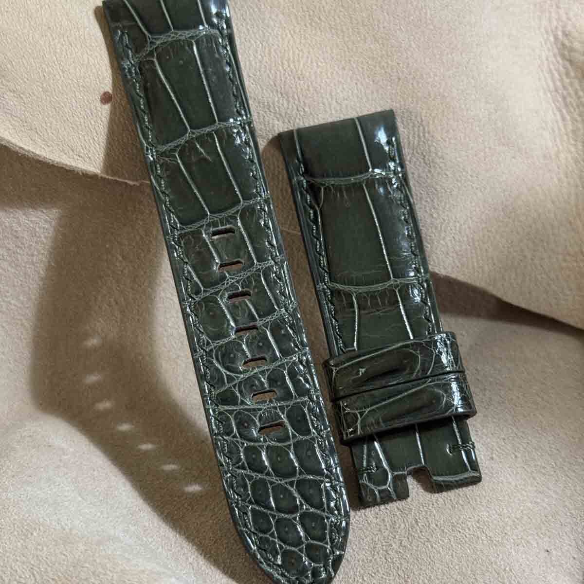 cro-1950 クロコダイル 腕時計 ベルト グロス仕上げオリーブ (ラグ幅24 mm - バックル幅22 mm)