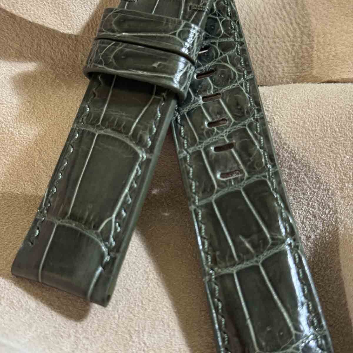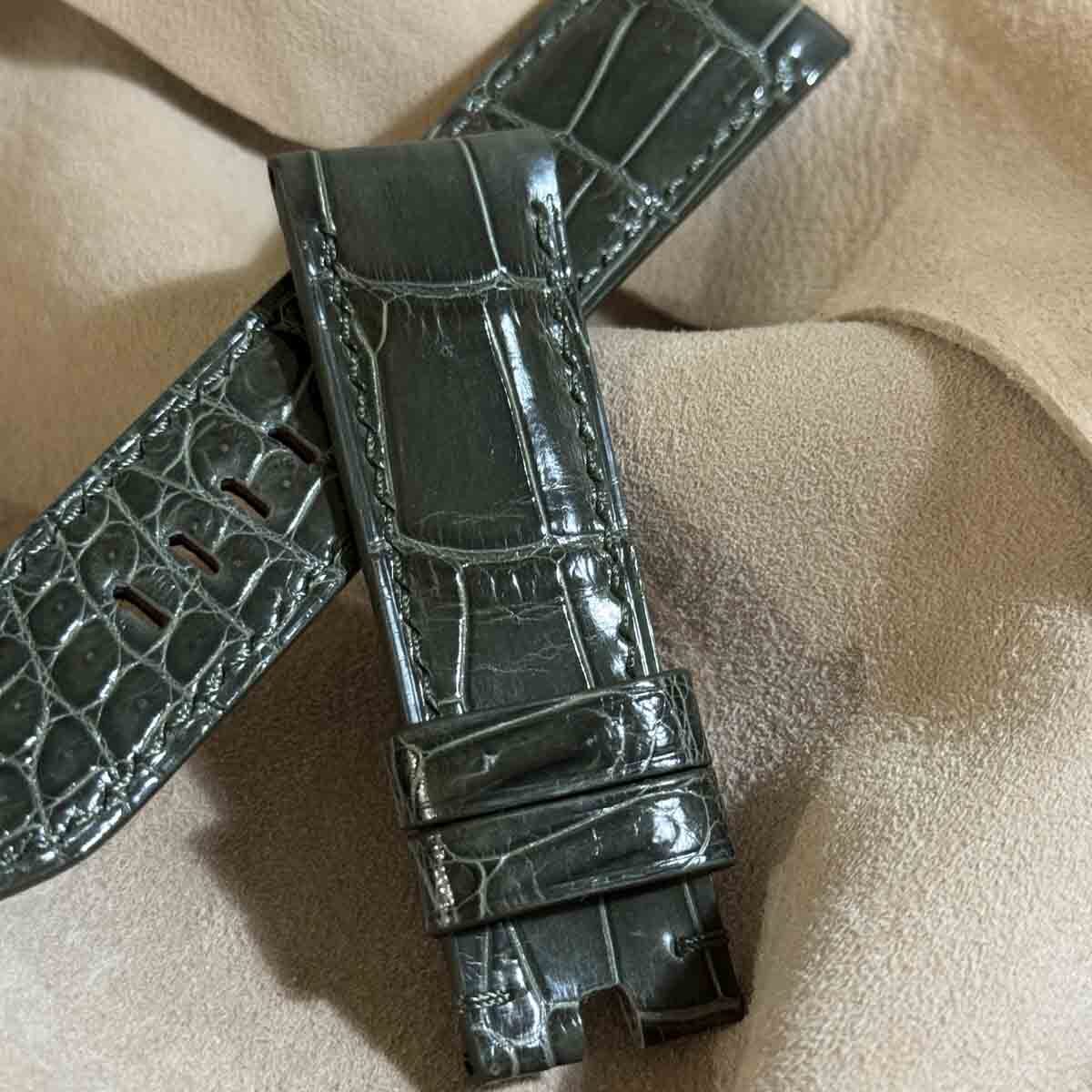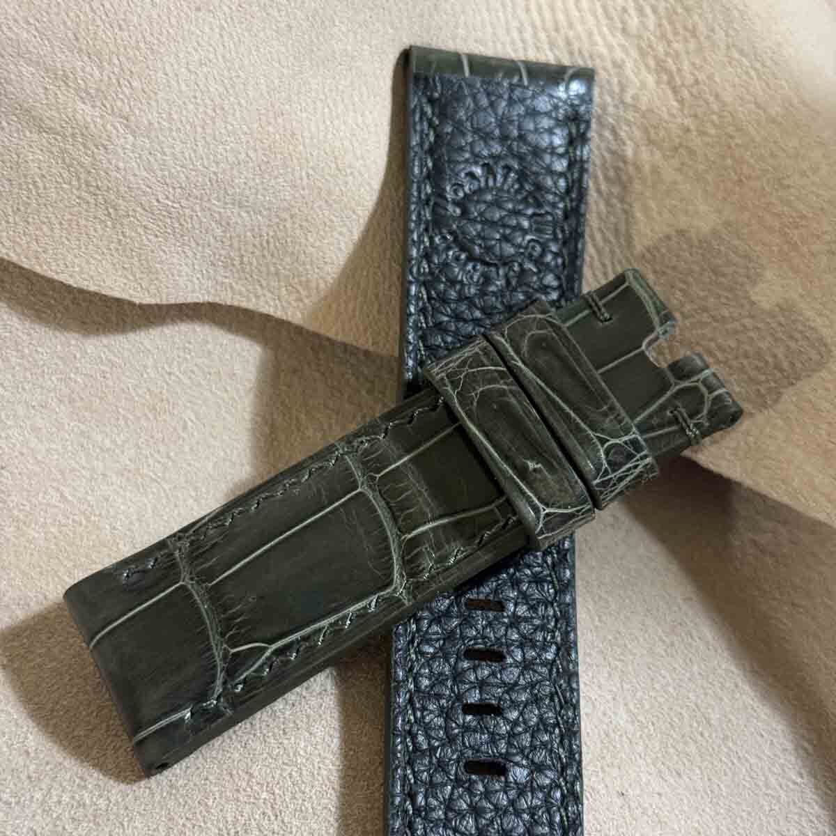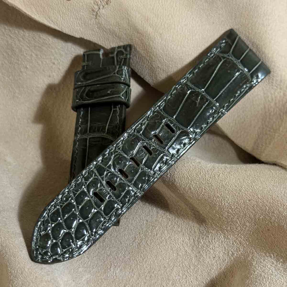 cro-1950 クロコダイル 腕時計 ベルト グロス仕上げオリーブ (ラグ幅24 mm - バックル幅22 mm)
