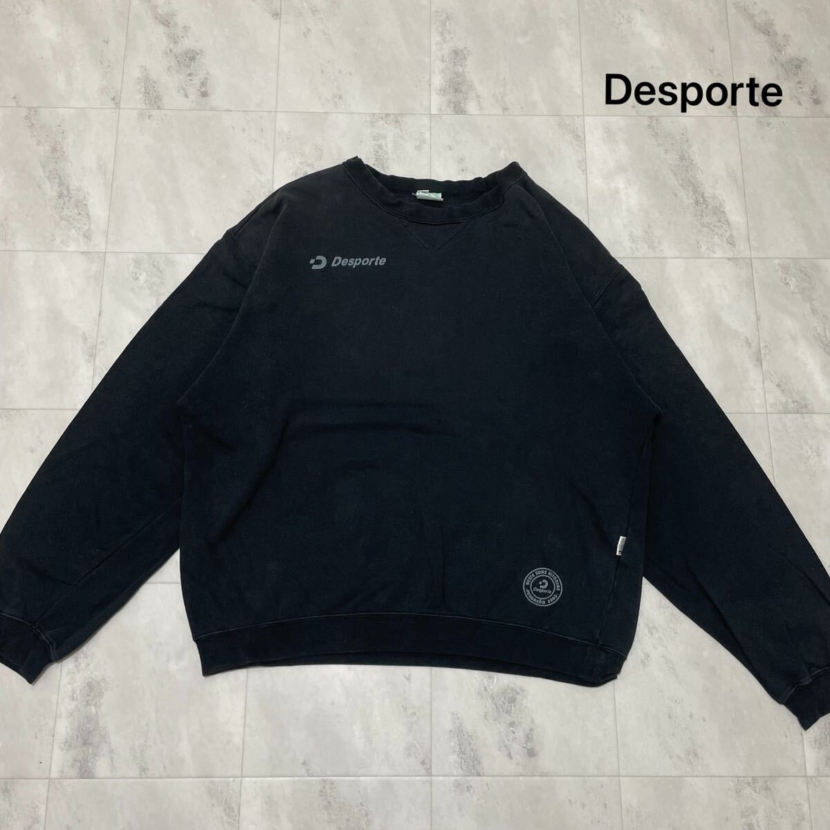 Desporte デスポルチ sweat スウェット トレーナー 長袖 フットサル サッカー スポーツ プリントロゴ Vガゼット ブラック サイズXO XL 玉ss4228
