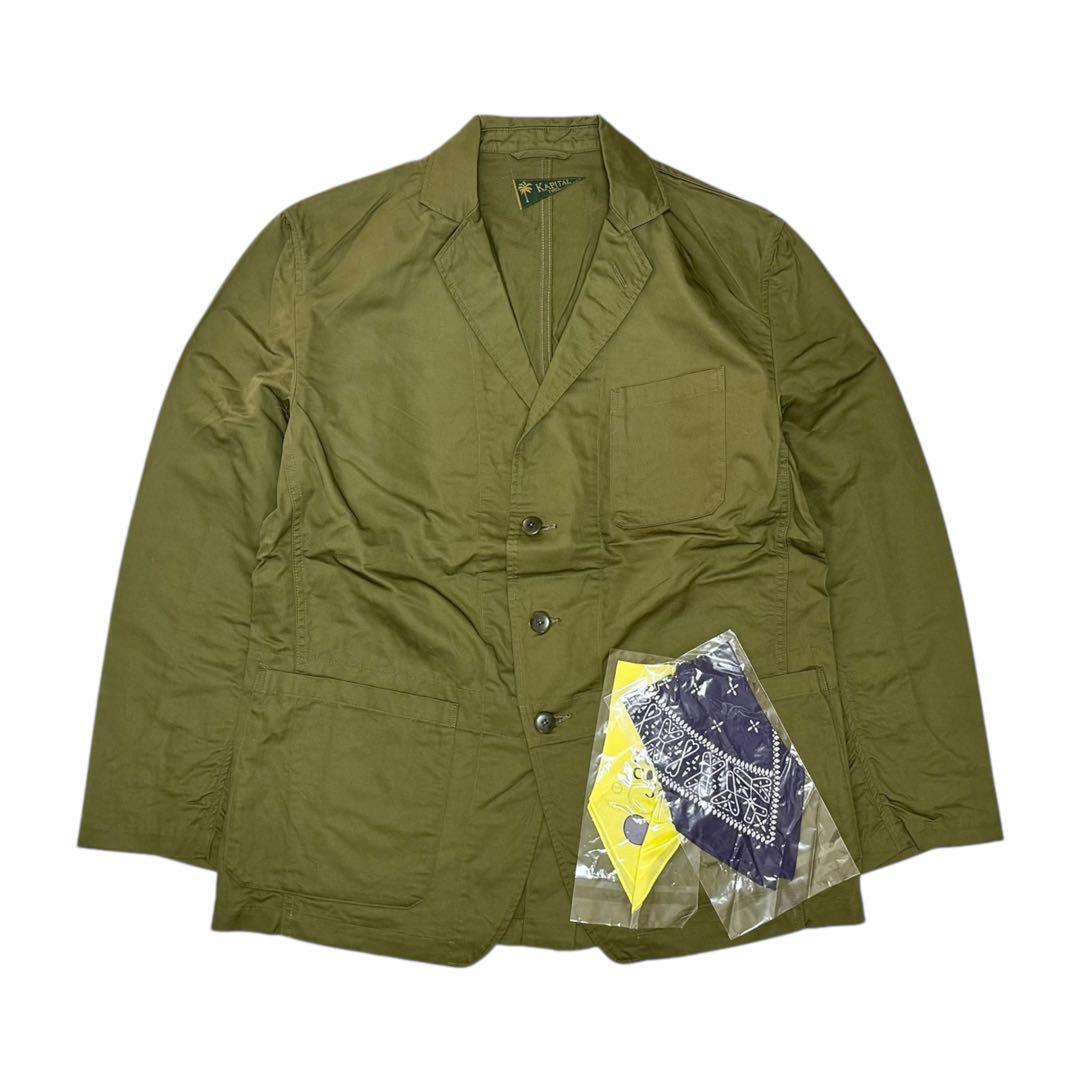 オリーブカラーのKAPITAL製テーラードジャケット。