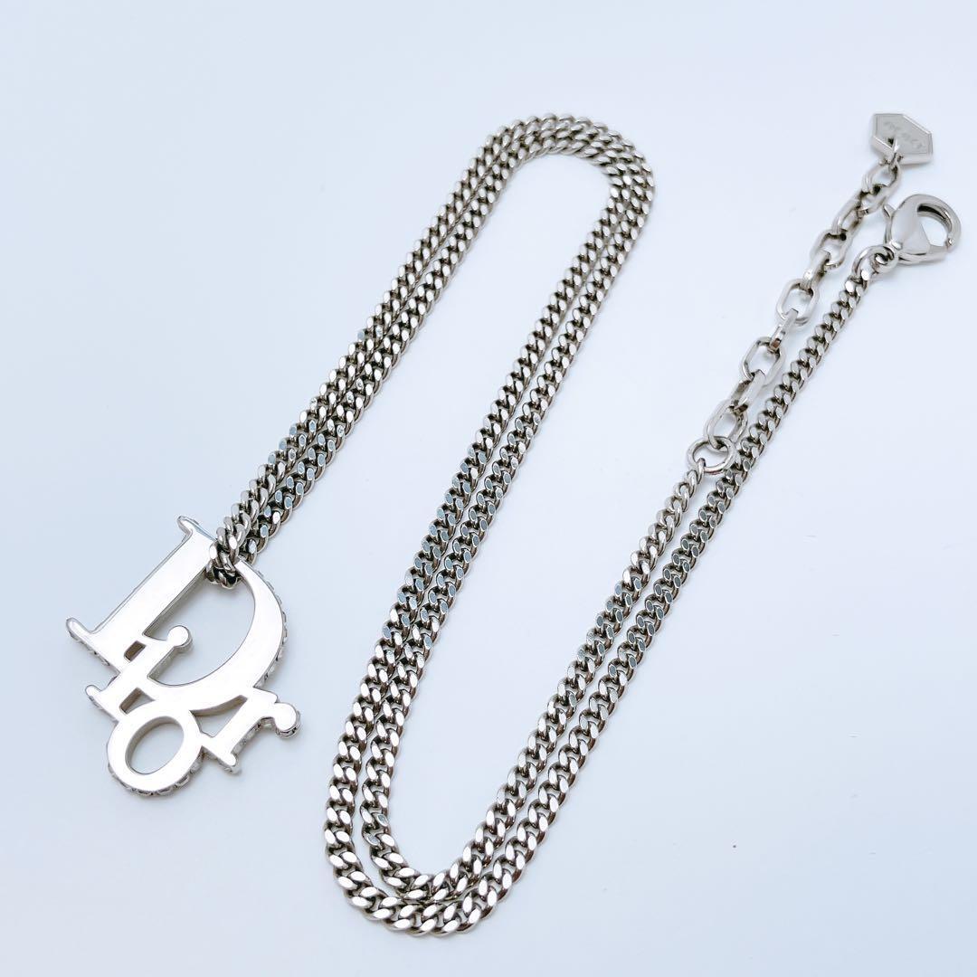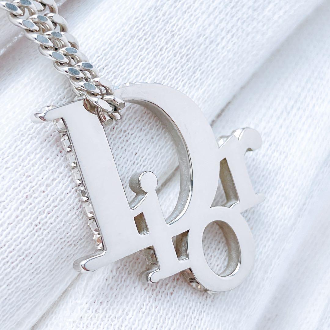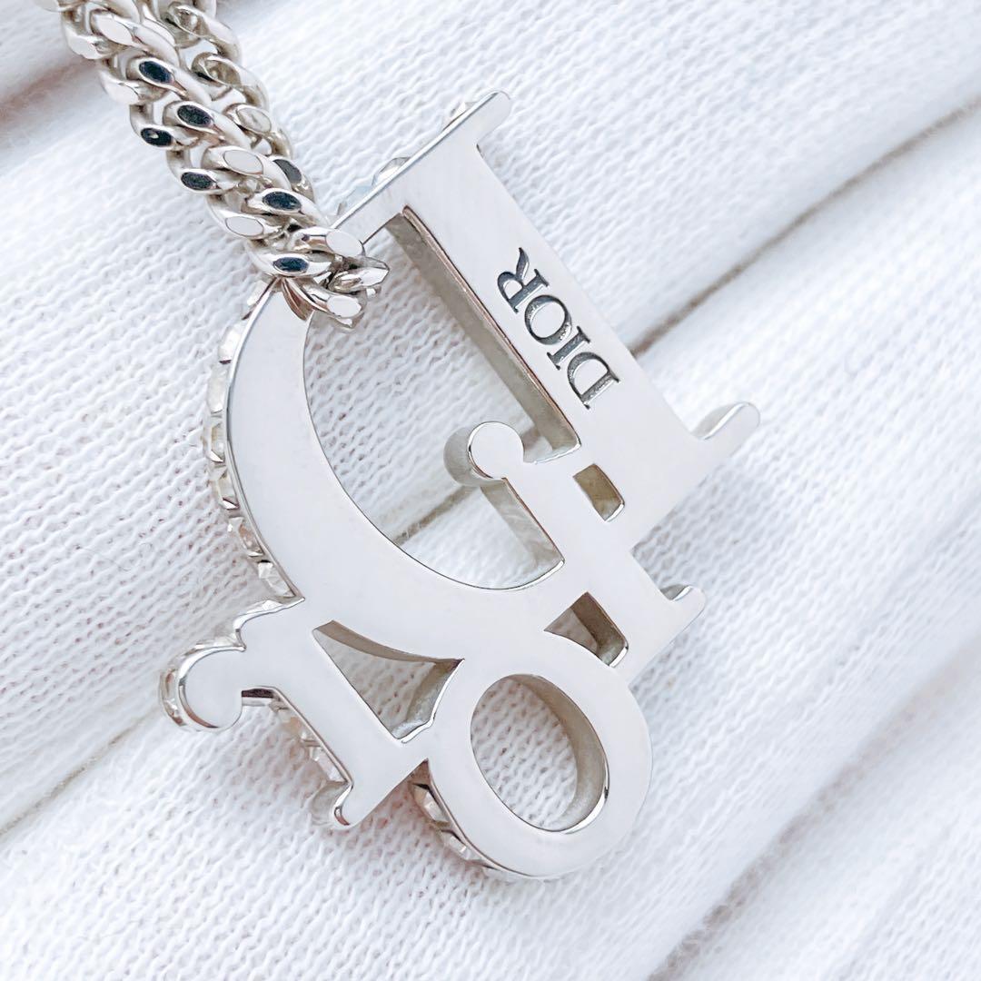 極美品 ディオール dior ネックレス シルバー メンズ ER53 アクセサリー クリスタル ペンダント チェーン オブリーク