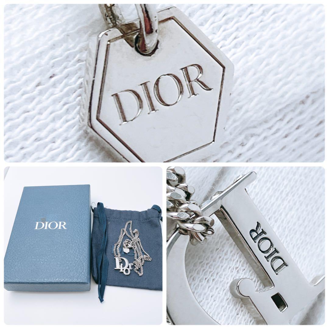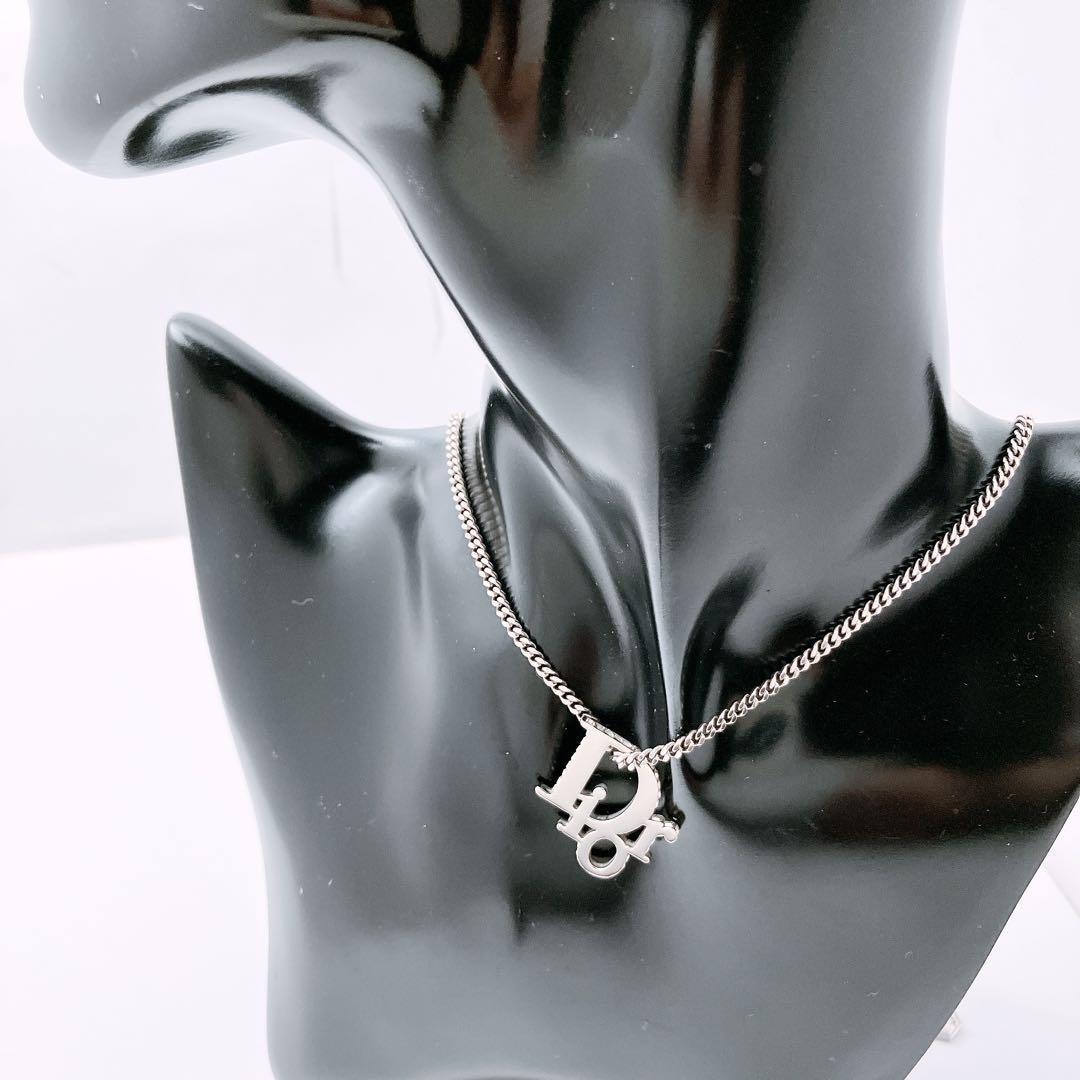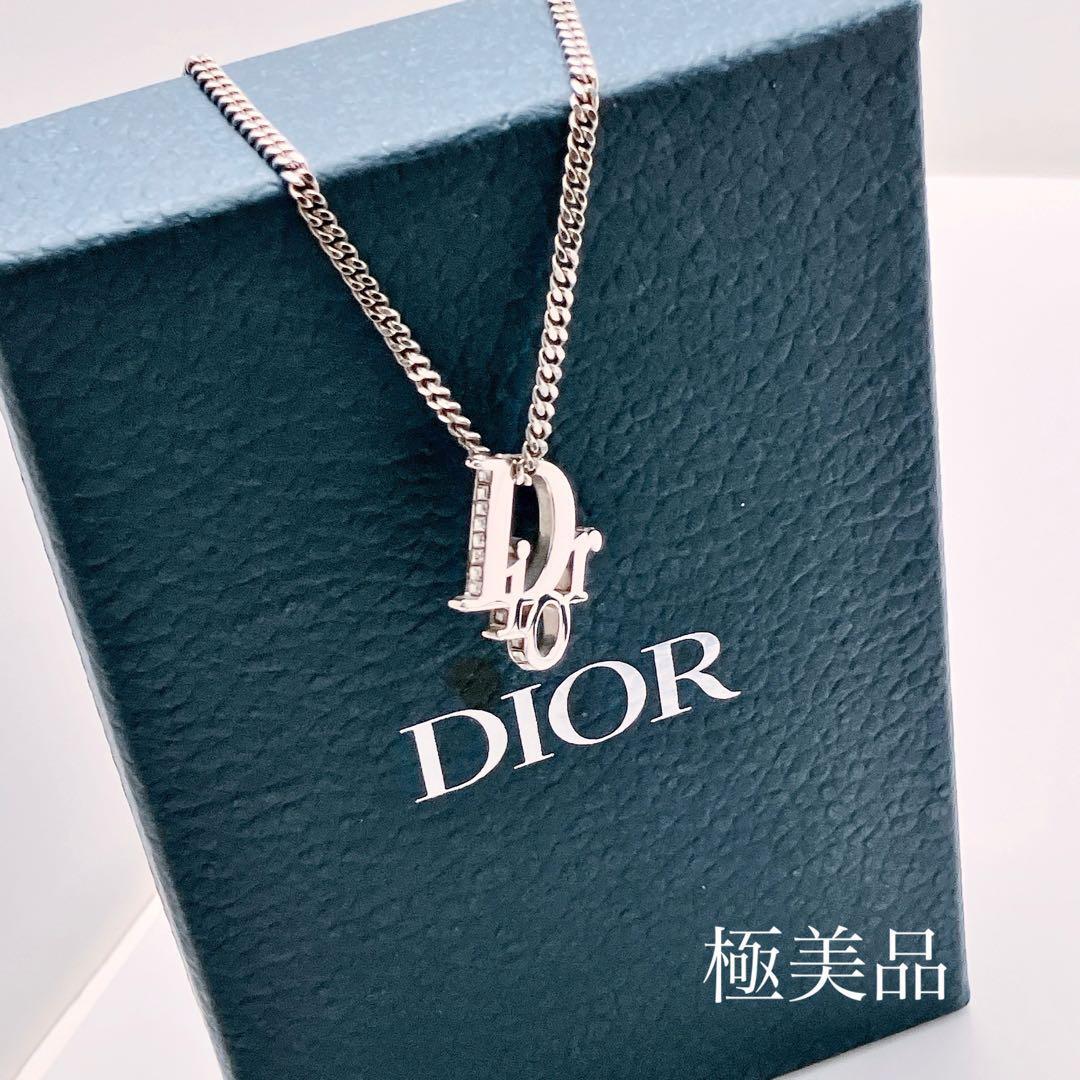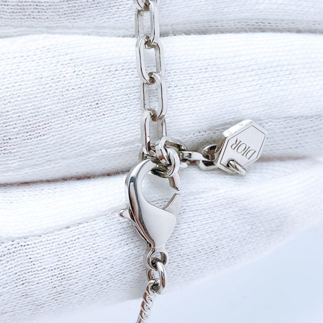 極美品 ディオール dior ネックレス シルバー メンズ ER53 アクセサリー クリスタル ペンダント チェーン オブリーク