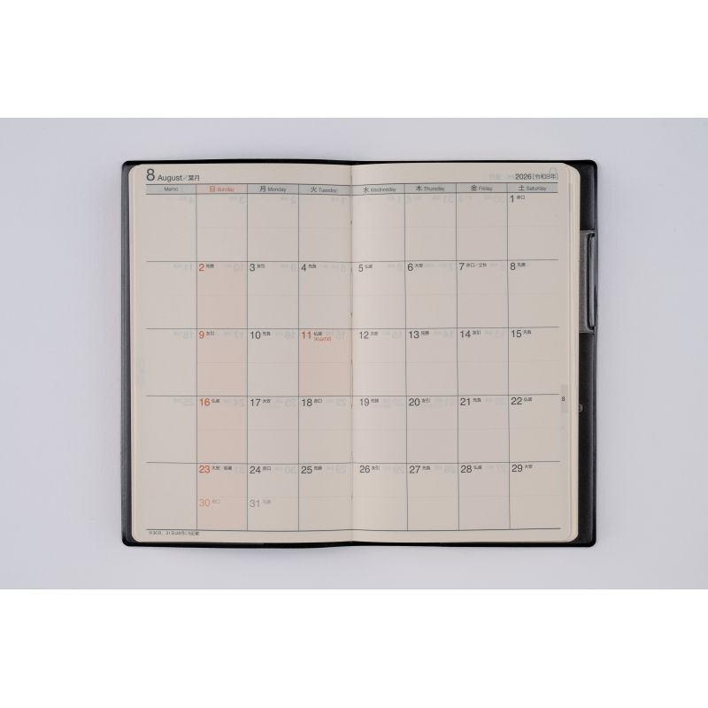 使いやすく、高級感のある皮革調。シリーズ唯一の日曜始まりです。高橋書店で人気の、ベーシックな記入形式の組み合わせ。