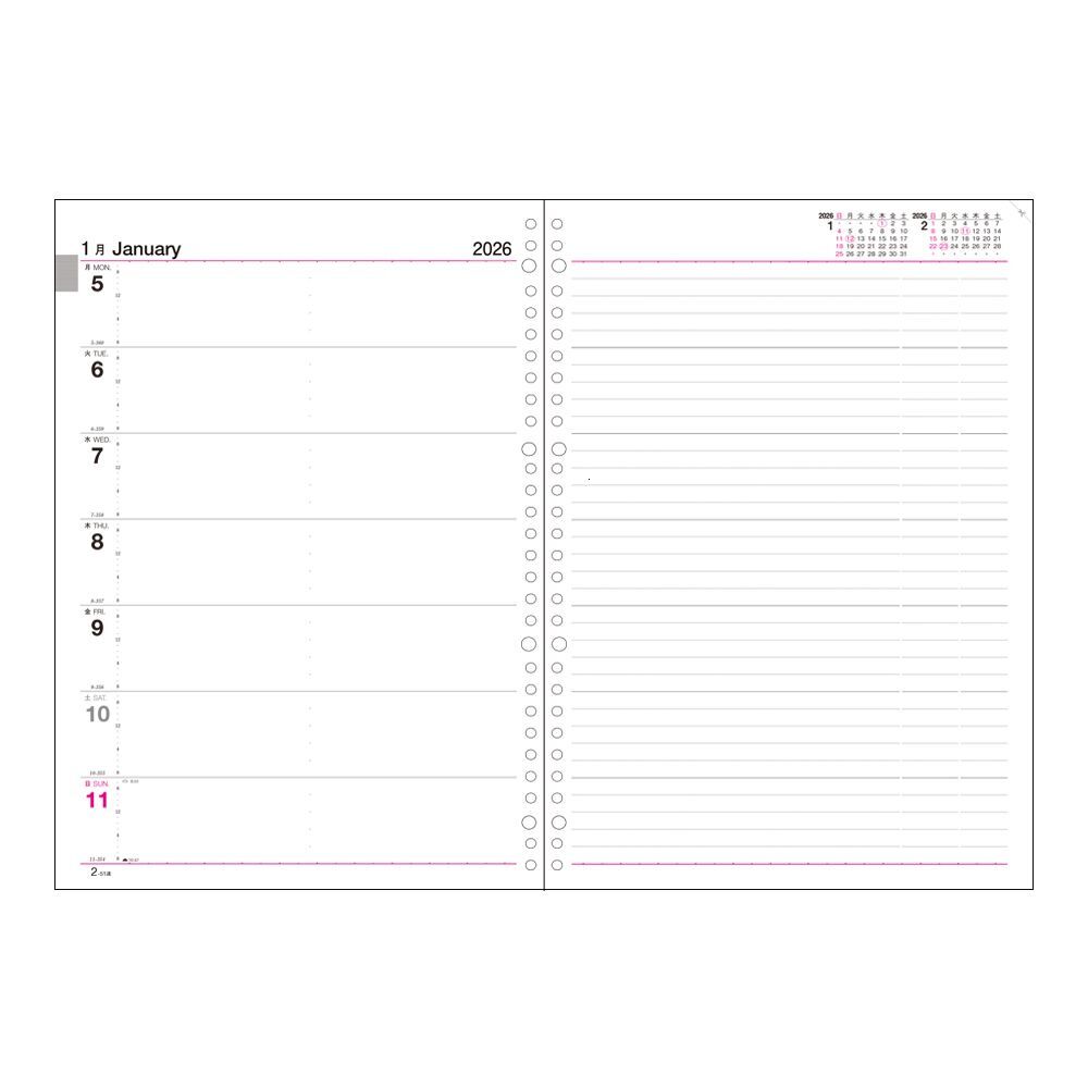 大変開きがよく、左右ページの行が段違いにならないワイヤーリングとじで、