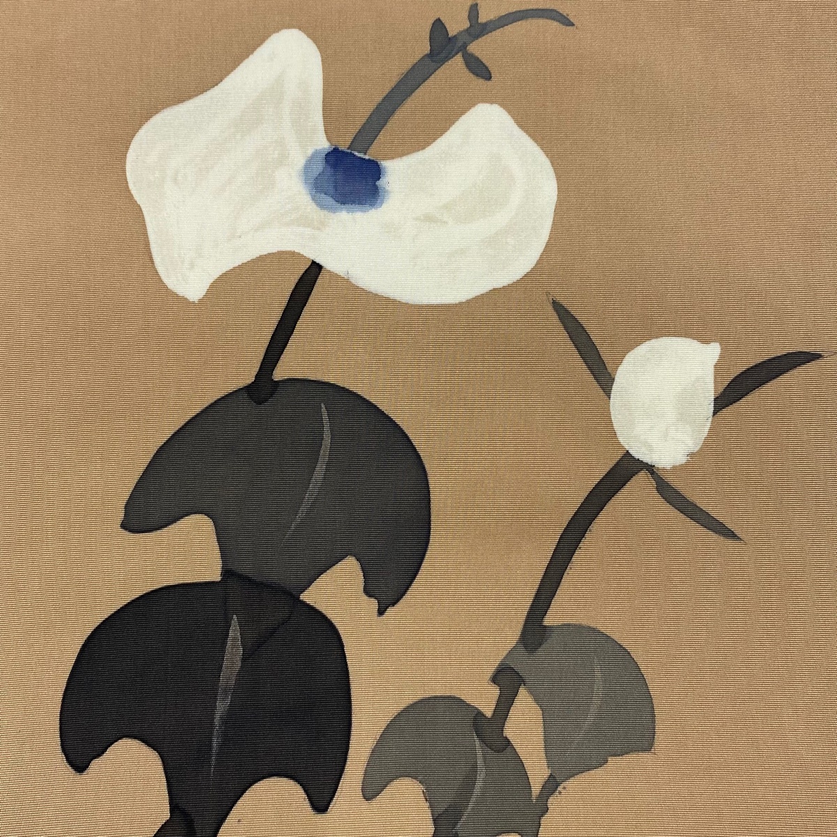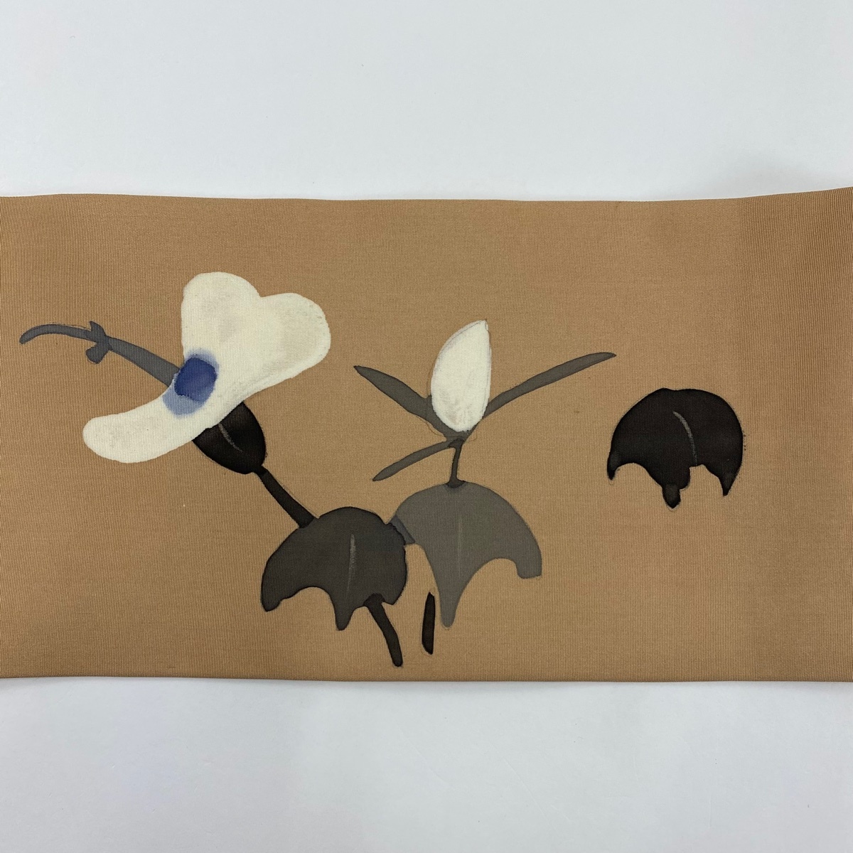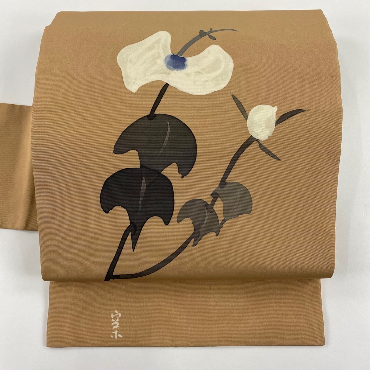 名古屋帯 名品 落款 高久空木 草花 薄茶色 正絹 【中古】 |