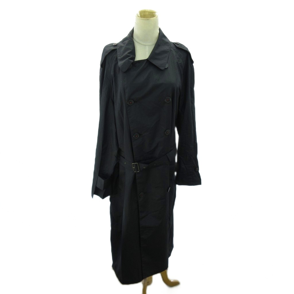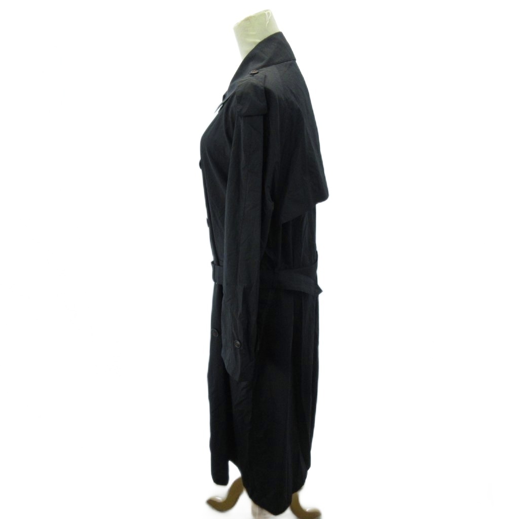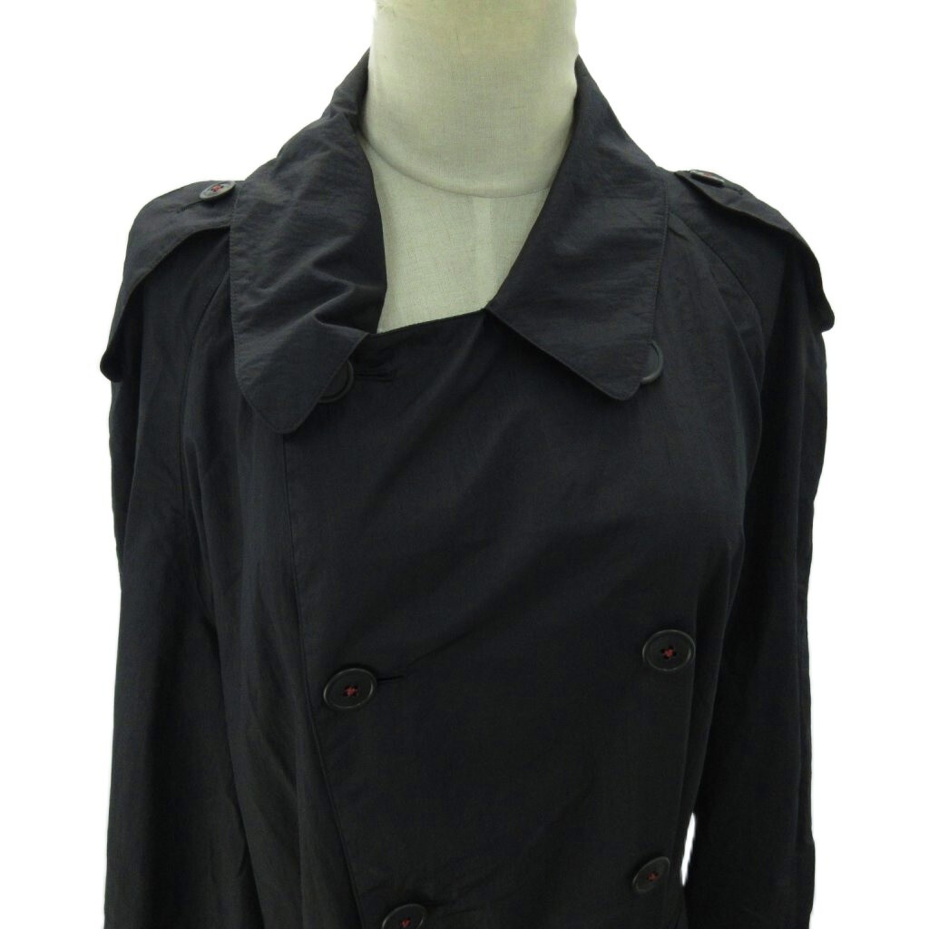 SANYO 美品 トレンチコート ナイロン ロング丈 L 黒 ブラック 0825 レディース