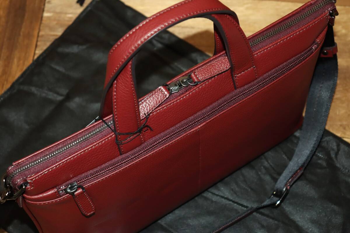 軽量でコンパクトなサイズにこだわったフジタカのA4ジャストサイズのレザーショルダーバッグ。