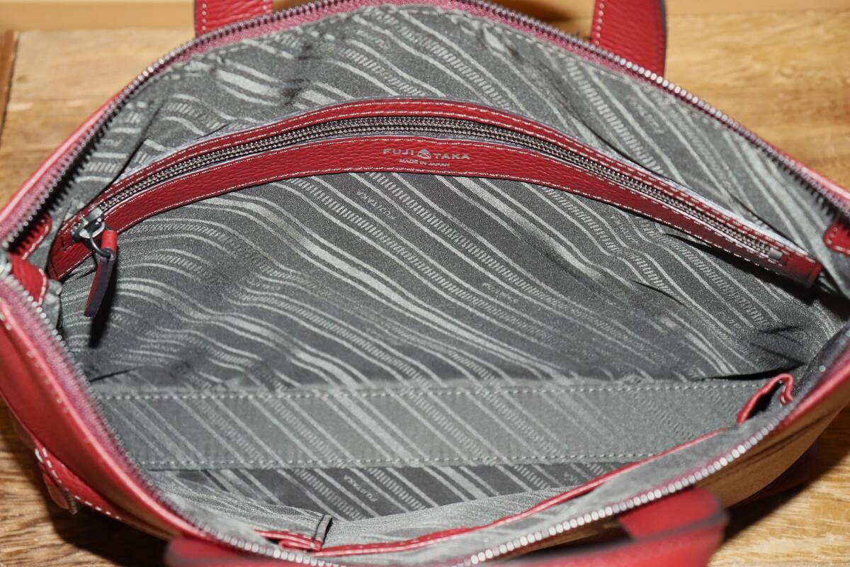 FUJITAKAのロゴが入ったオリジナルの金具を使うなど、FUJTIAKAのこだわりが感じられる鞄です。