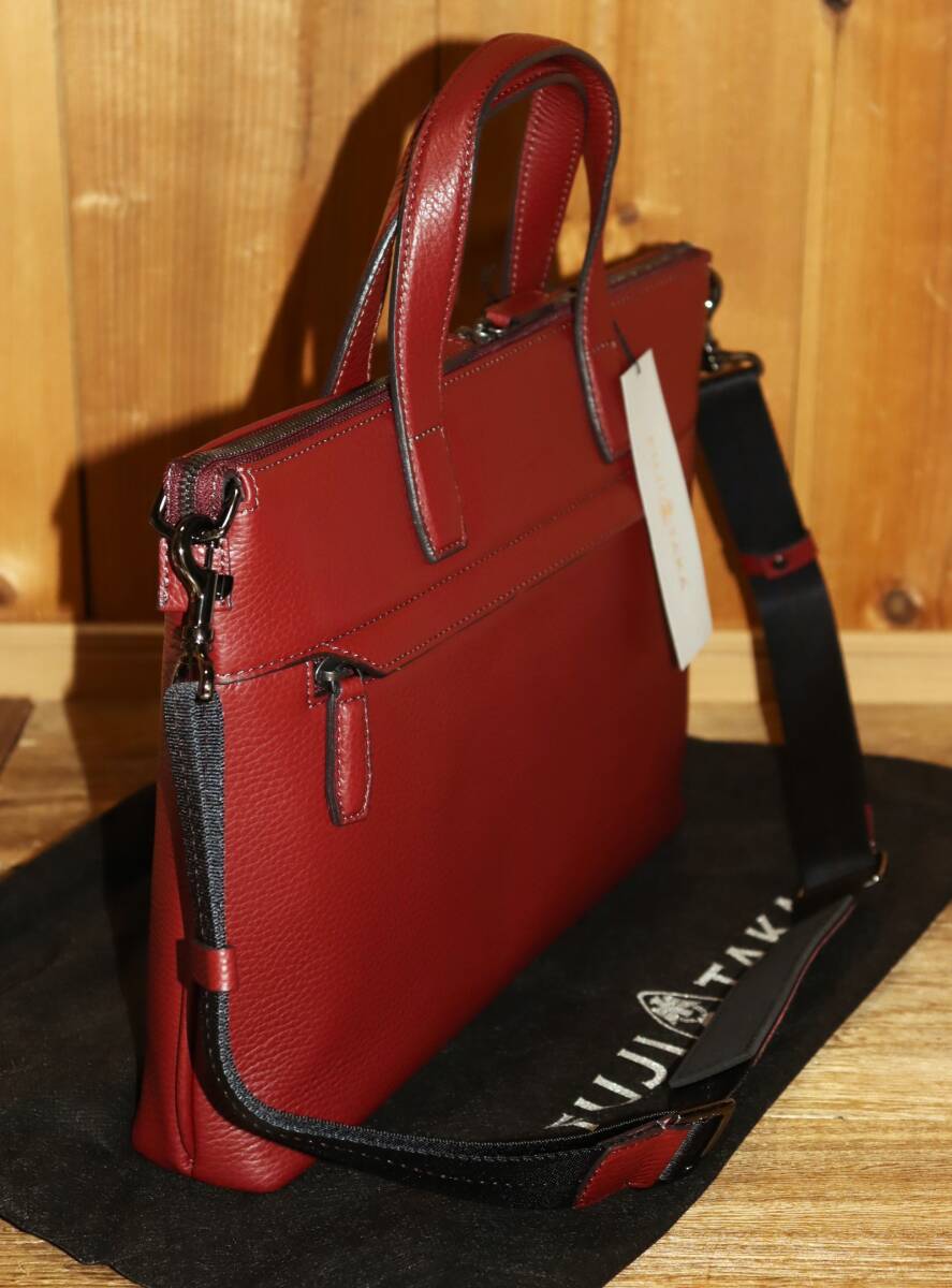 送料無料 即決【未使用】 FUJITAKA ★ イタリアンレザー ショルダーバッグ A4 イーナ ★ フジタカ 日本製 税込定価4万4000円 630501 併