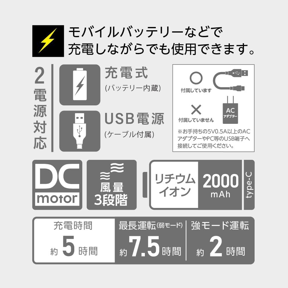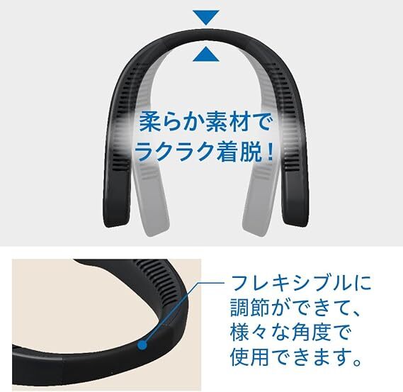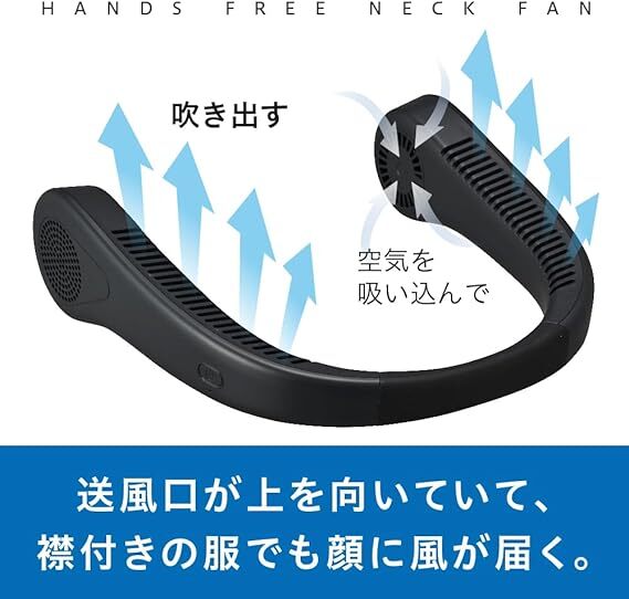 ★☆新品保証付 ドウシシャ スマートネックファン 2電源対応(充電式・USB電源) 風量3段階 DCモーター ブラック ZSF-060B BK☆★ | ||