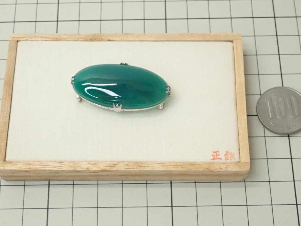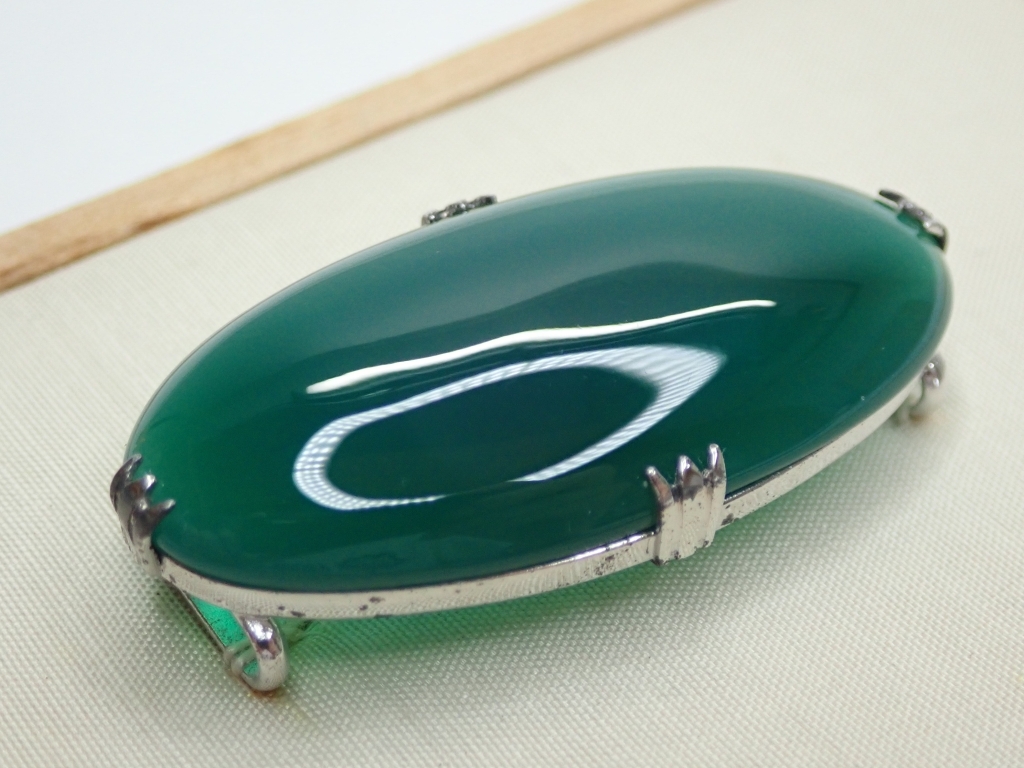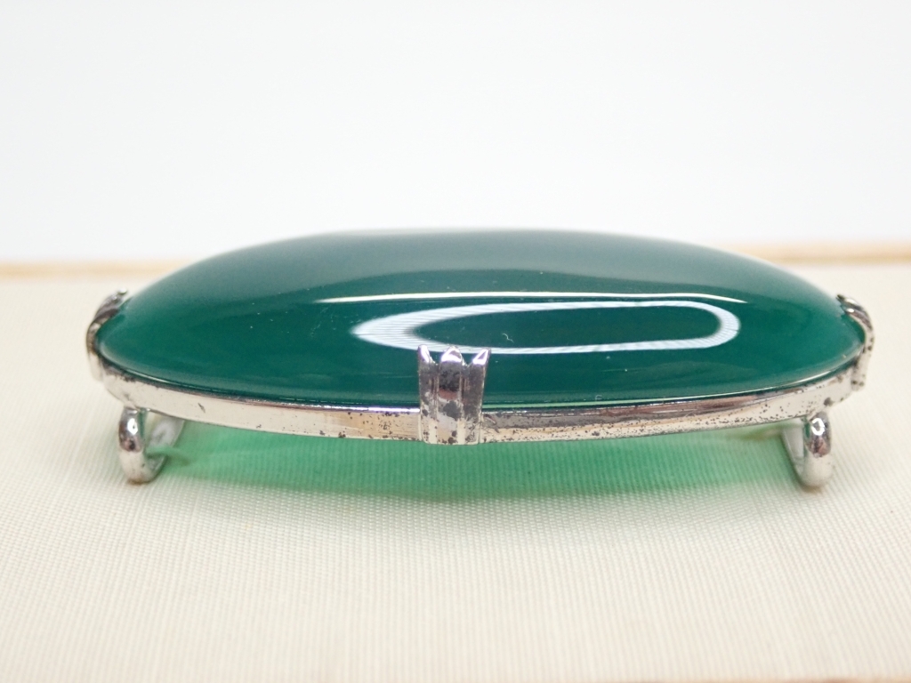 B877 帯留め 天然石 瑪瑙 緑めのう 楕円型 和装小物/レトロ/帯飾り/着物/Japanese Kimono Jewelry
