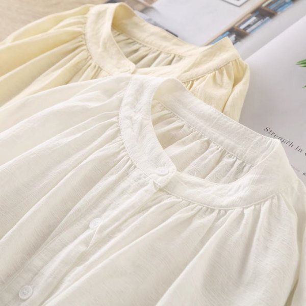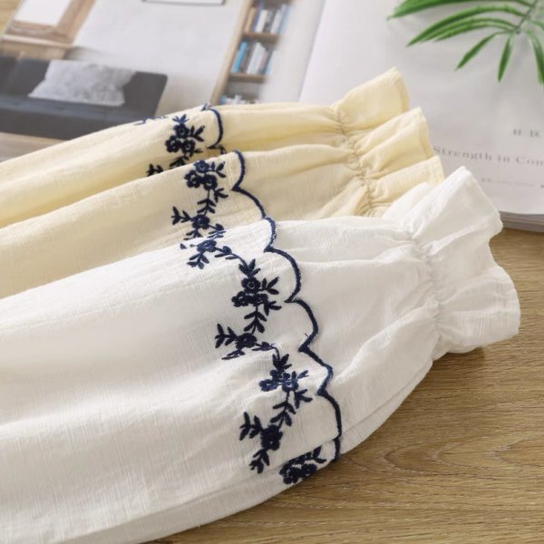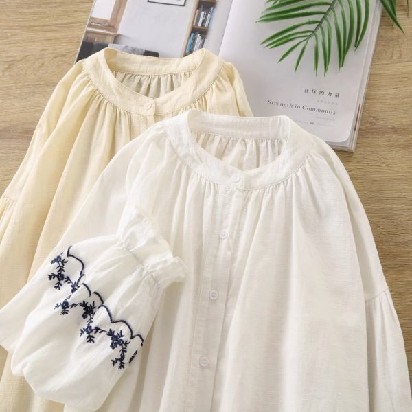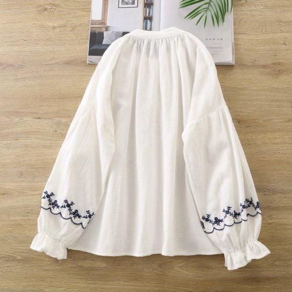 xx 0704 袖刺繍花柄 チュニック ワイシャツ トップス 綿100% ゆったり オシャレ フリーサイズ ナチュラル ホワイト