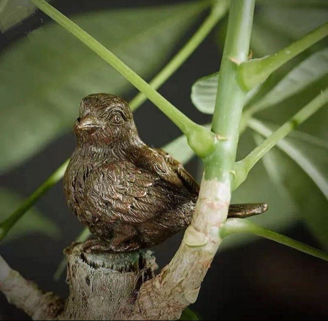 ずっしりしたレトロな真鍮製のスズメの置物です。