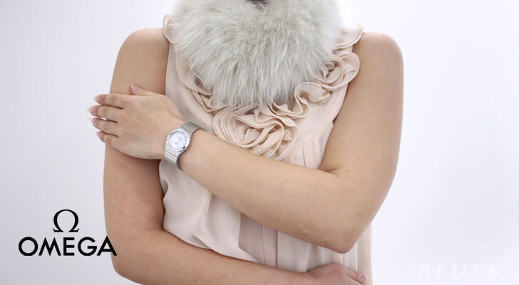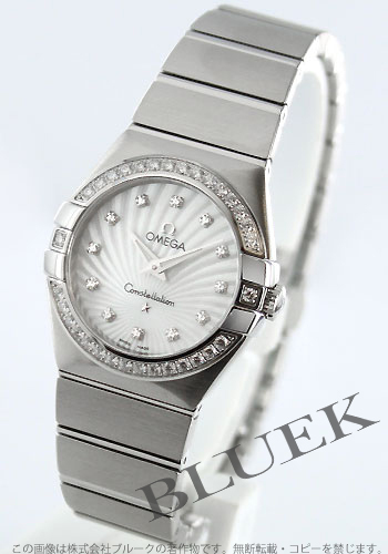 | シルバーステンレスケース・ダイヤ装飾を施したシルバーステンレスベゼル・ギョーシェ模様が入ったホワイトシェル文字盤・シルバーの指針・ダイヤ装飾を施したドットインデックス・シルバーのブレス・プッシュ式の両開きバックル・リューズガード |