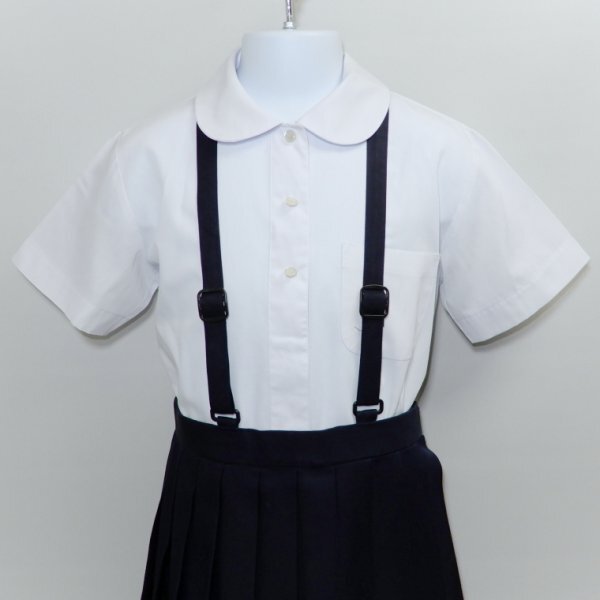 ●丸襟ブラウス(半袖/白色)・・・胸囲:83㎝ 肩幅:33.5㎝ 着丈:51㎝ 袖丈:16㎝ 襟回り:35㎝