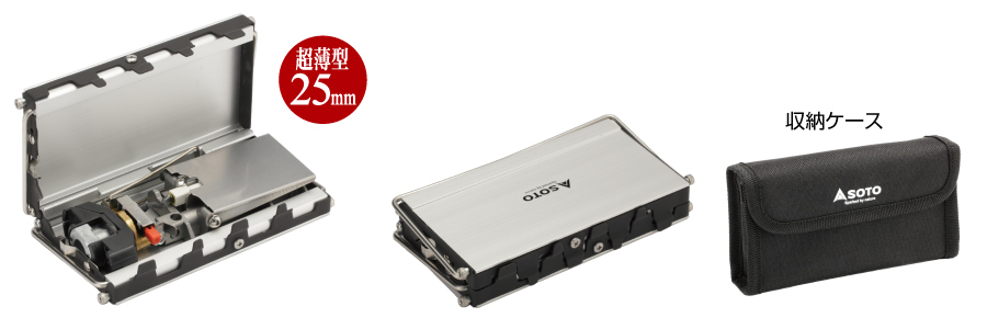 ・収納時には厚さ25mmという薄さになるシングルバーナーです。