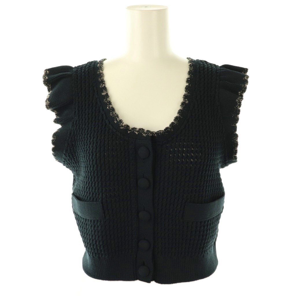 未使用品 ヨリ yori 25SS クロシェニットミニジレ ベスト ラメ F ネイビー ゴールド色 /DO ■OS ■SH レディース
