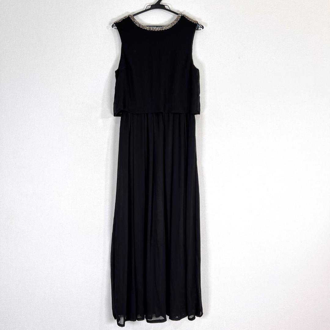 女性用の黒 ブラック系の袖なしロングワンピース ドレスワンピース フォーマルドレス フォーマルワンピースです。中古品ですが目立つ傷や汚れもなく、まだまだ使えます。古着 センス オブ プレイス 株式会社アーバンリサーチ エレガントワンピース