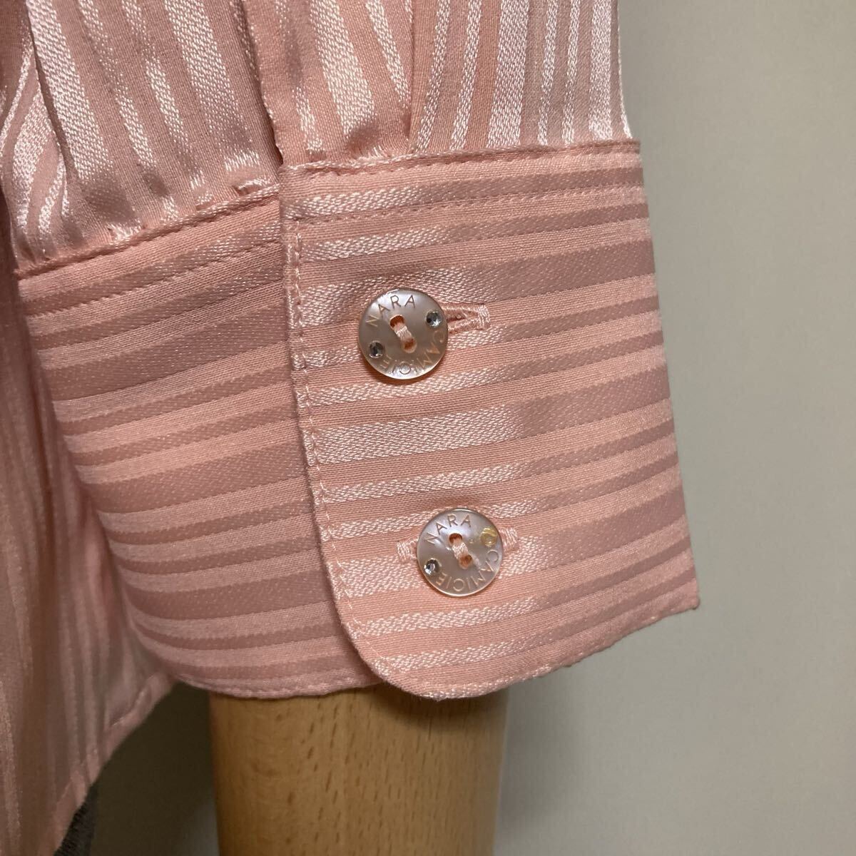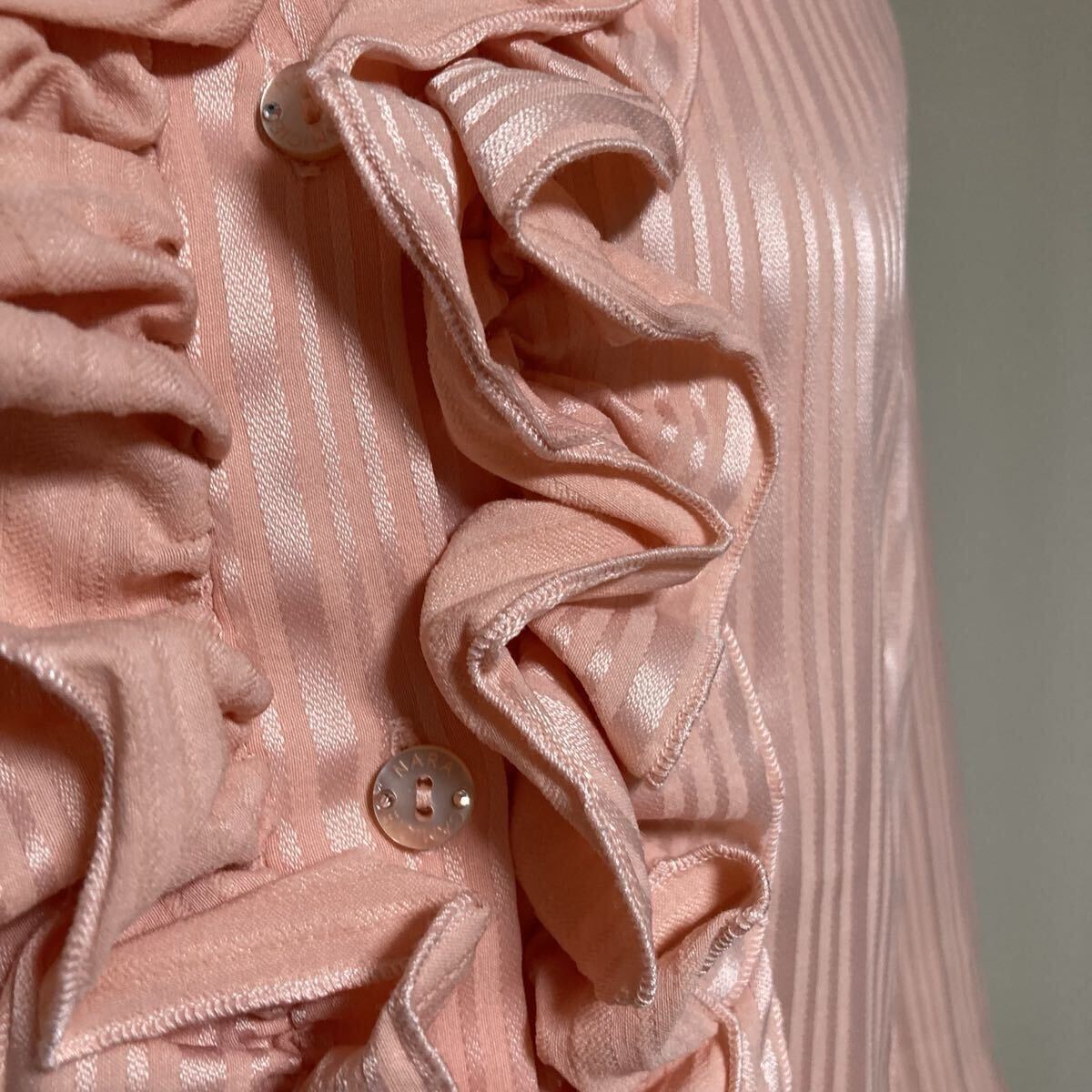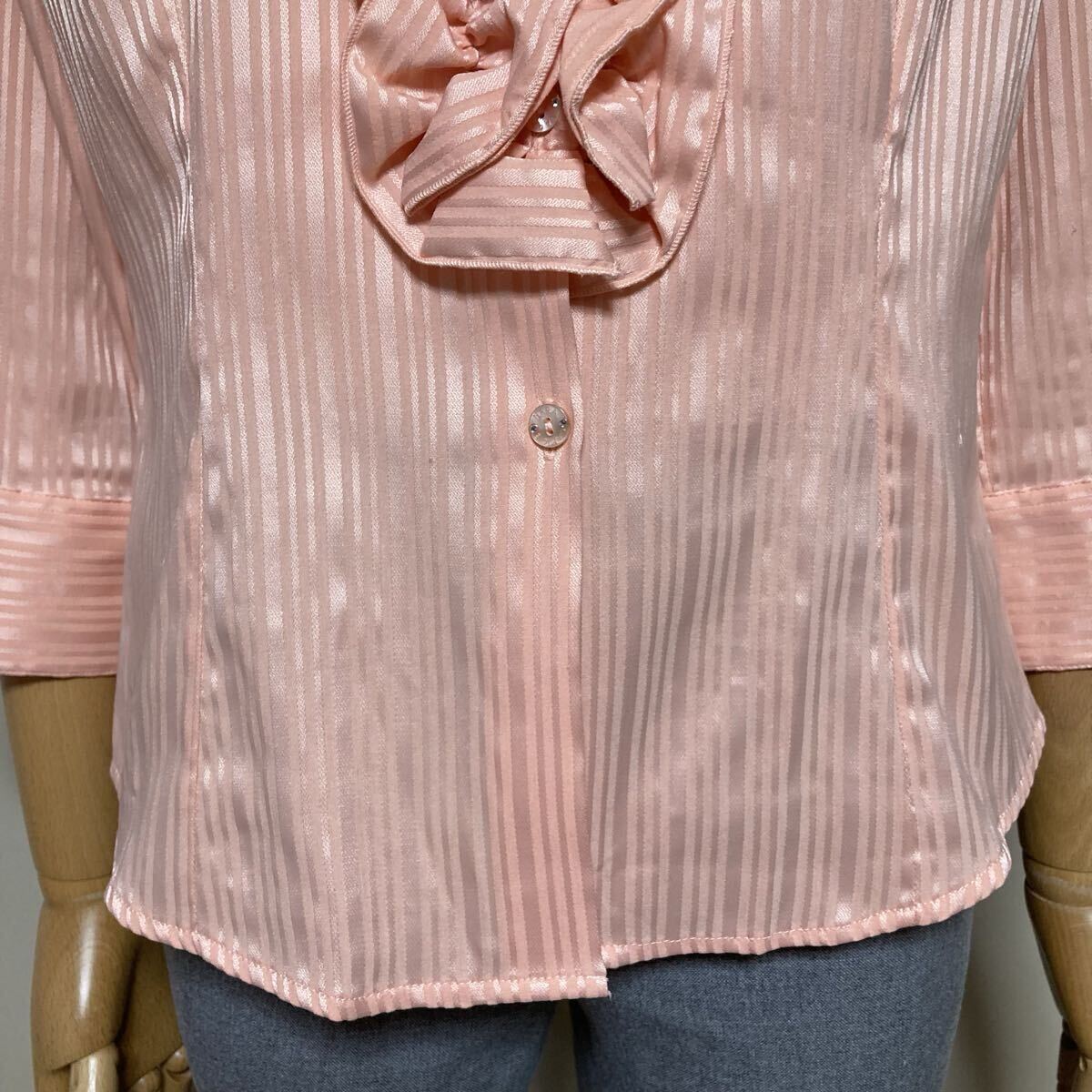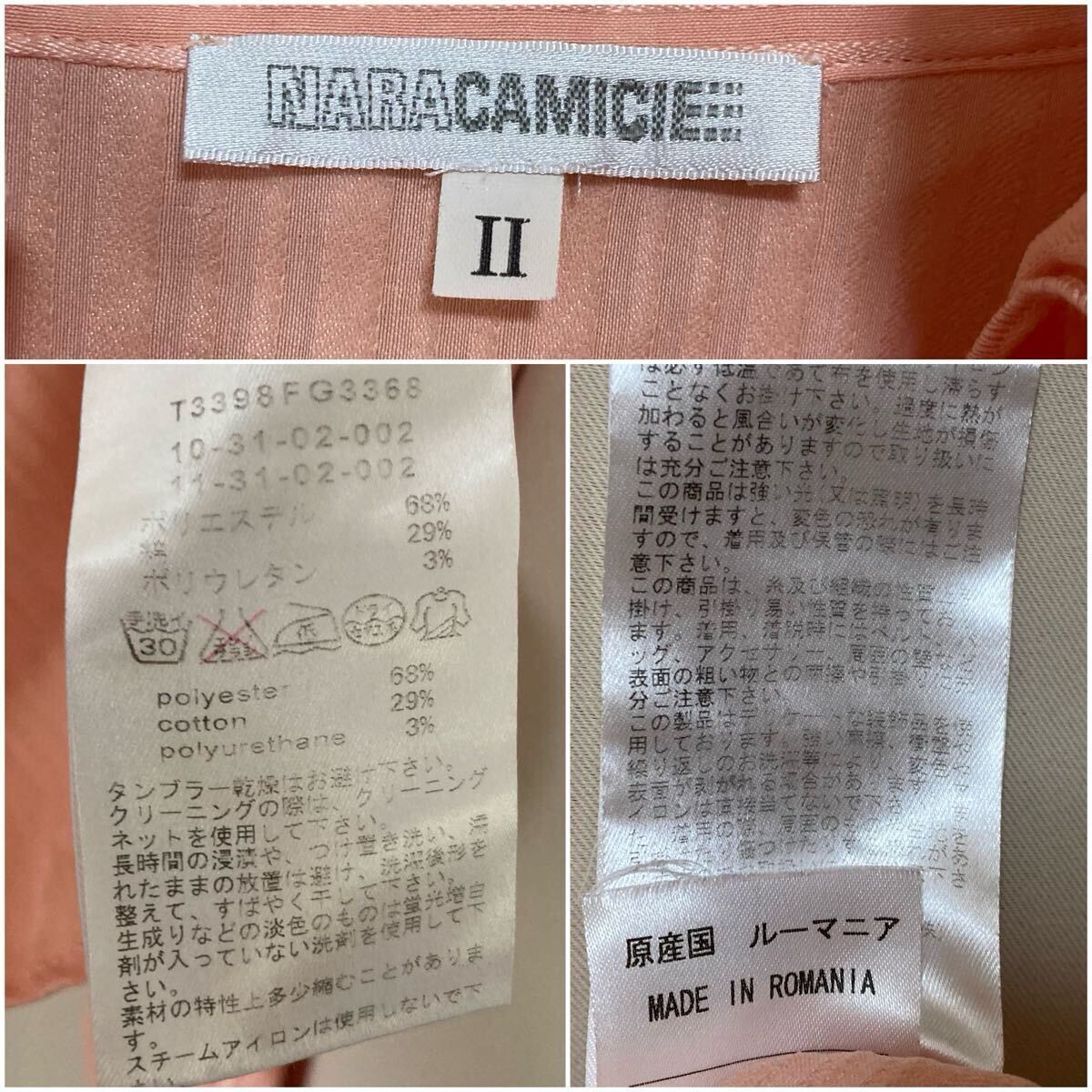 【NARACAMICIE】ナラカミーチェ 洗える ストレッチ ストライプ フロントフリル 七分袖ブラウス シャツ サイズ2/L相当 ピンク レディース