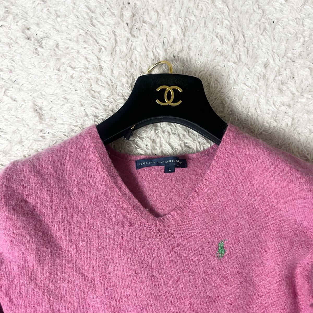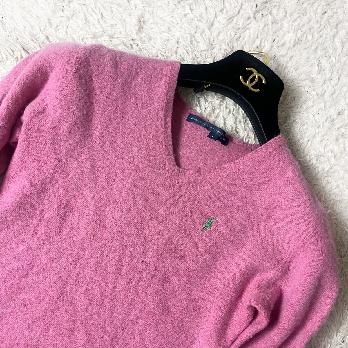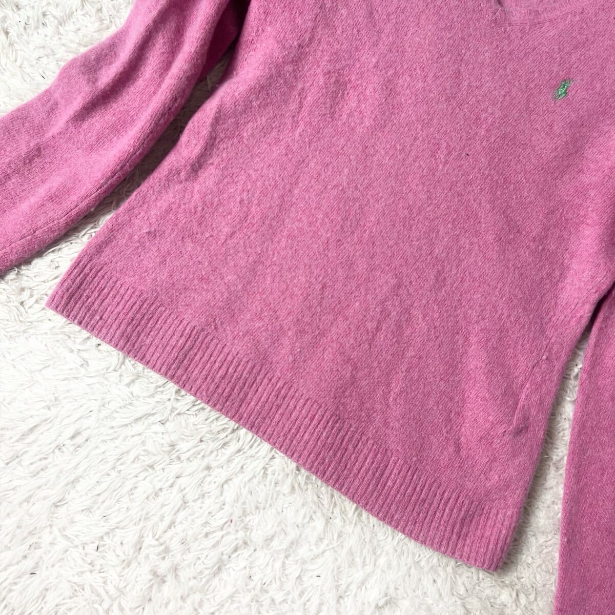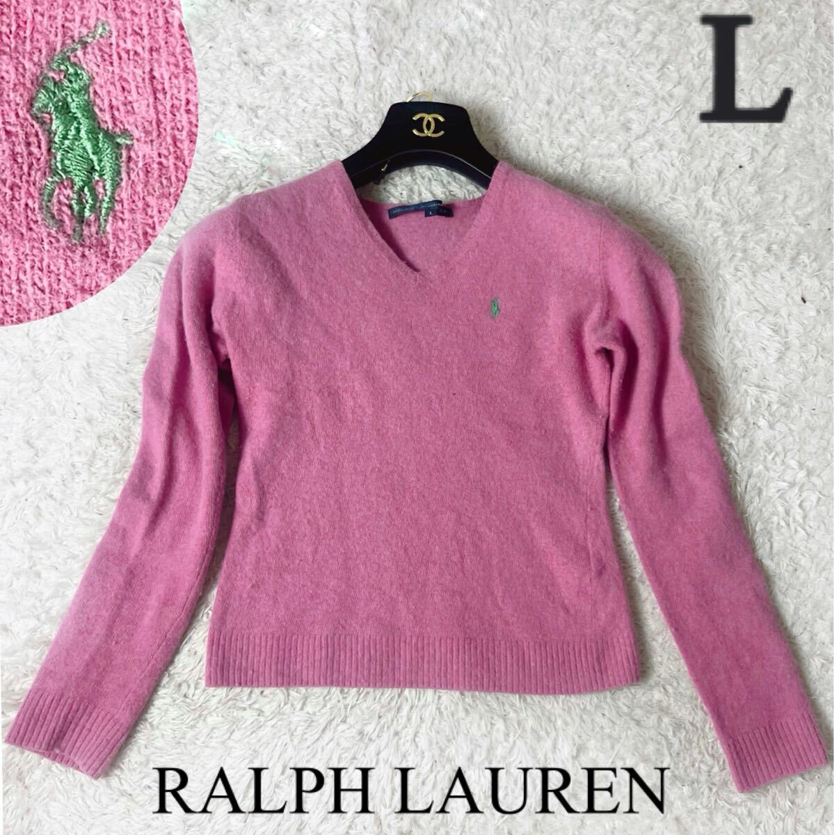 ラルフローレン ウール カシミヤ ニット セーター ポニー ブランドロゴ ワンポイント 刺繍 ピンク RALPH Ralph 大きいサイズ カシミア L