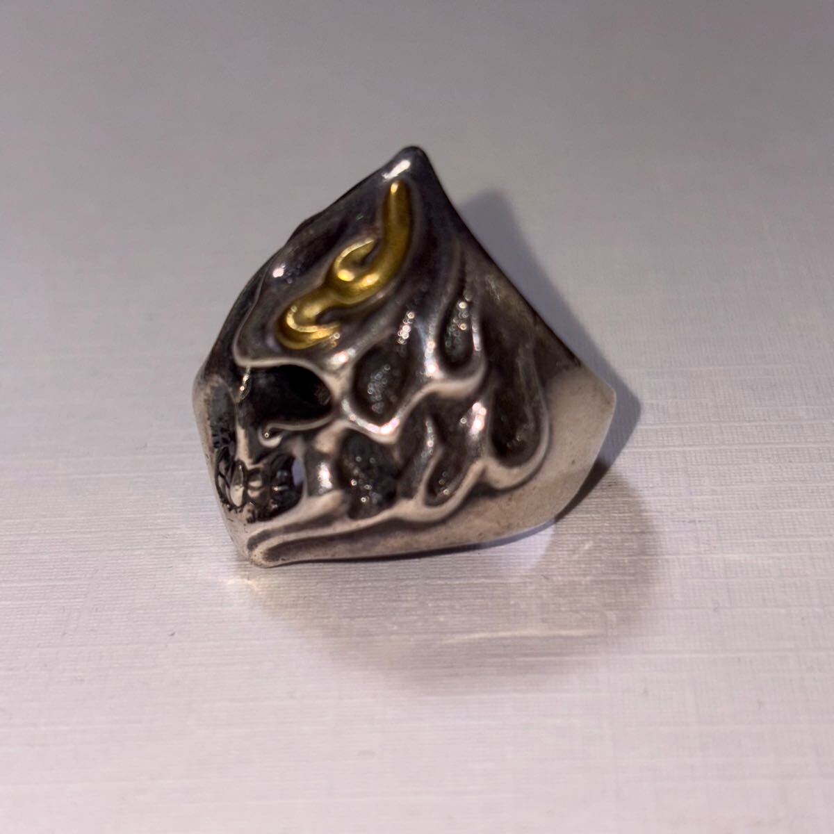 額に浮かぶ炎はアクセントとして真鍮を用いています。
