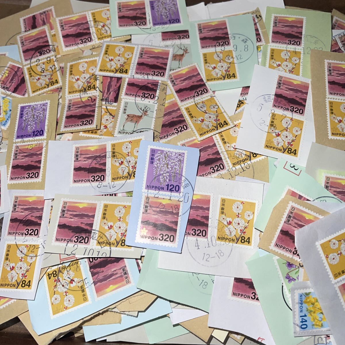 使用済み新320円切手、紙付きの瀬戸内海国立公園 1450枚です。消印に関して、一切確認していません。特定の消印の抜きとりはやっていません。