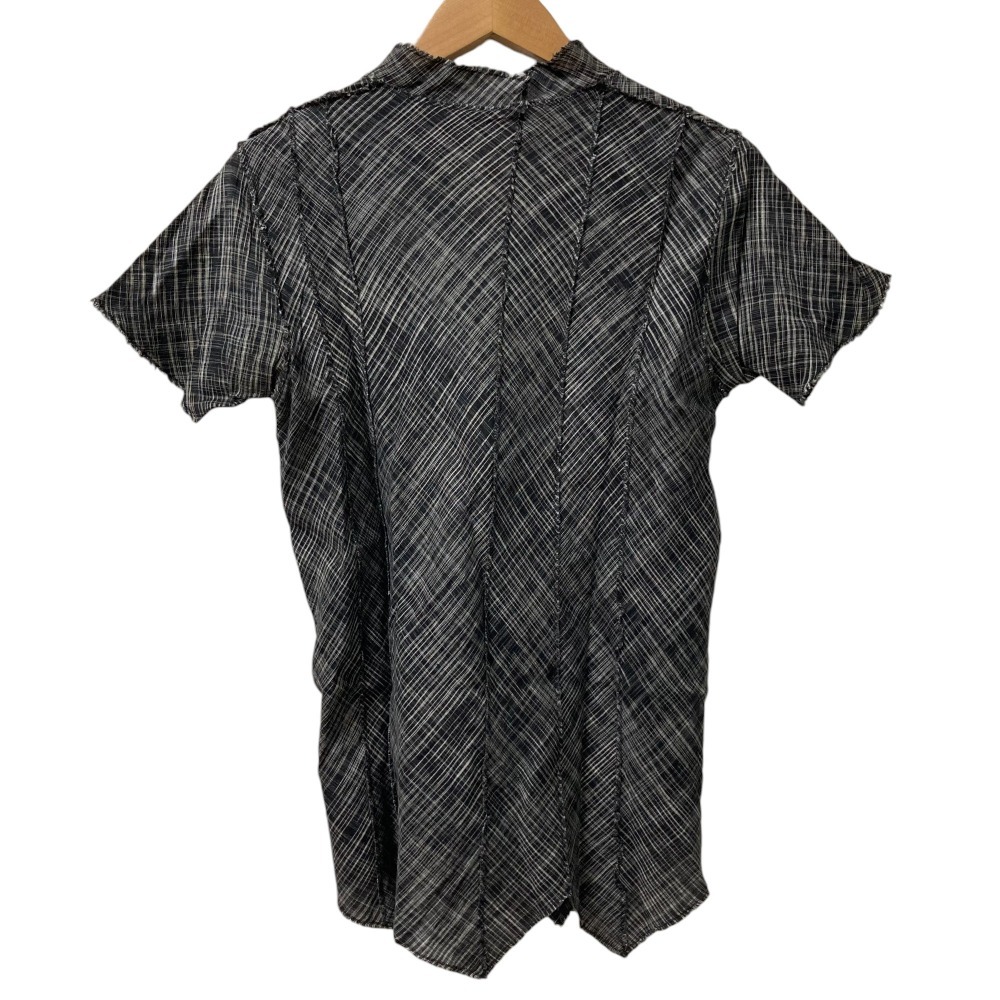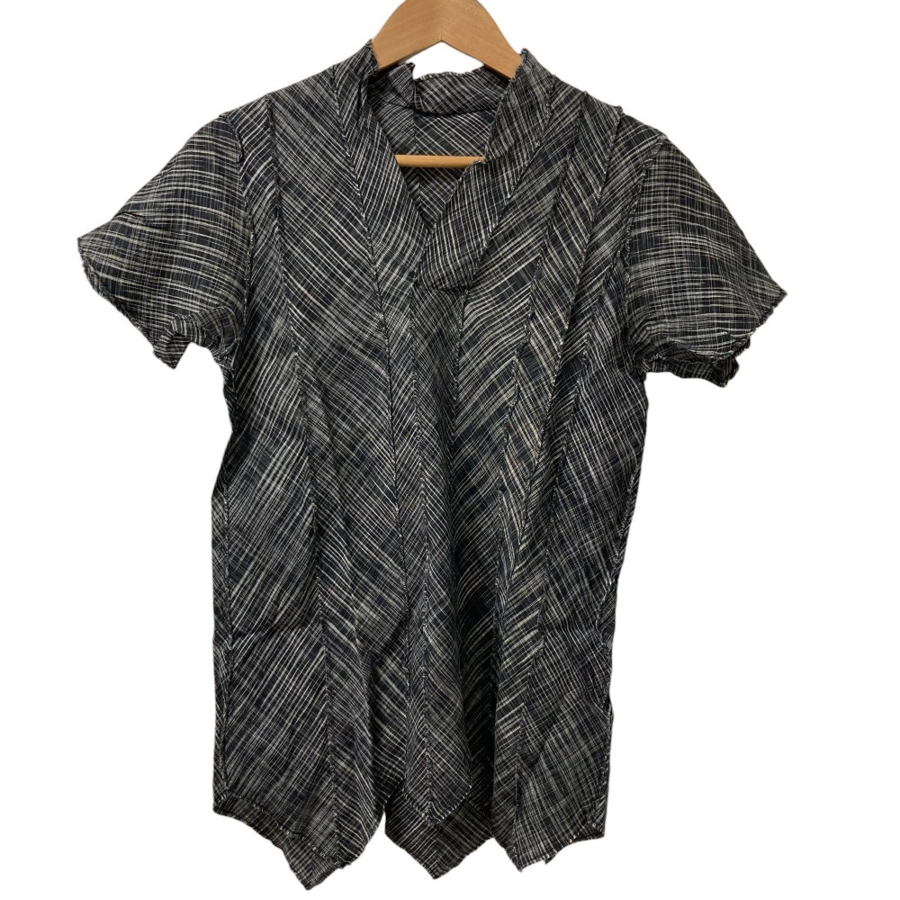 商品名:Jurgen Lehl ヨーガンレール リネンコットン チェック柄 半袖 プルオーバー シャツ ブラウス M ブラック×ホワイト
