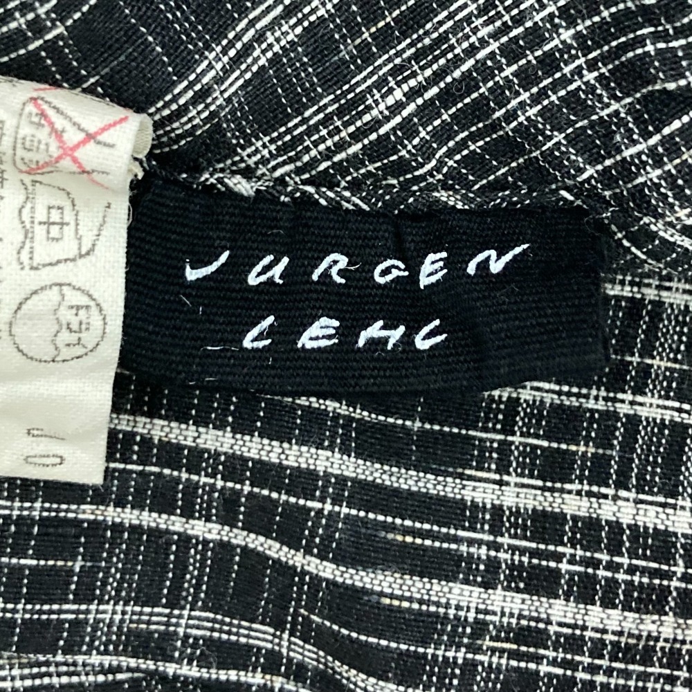 美品 Jurgen Lehl ヨーガンレール リネンコットン チェック柄 半袖 プルオーバー シャツ ブラウス M ブラック×ホワイト