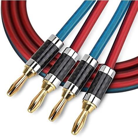 【製品】バナナプラグ付スピーカーケーブル 加工済み完成品 3MX2本 1セット販売し、バナナプラグ⇔バナナプラグ、赤青ケーブルは、正負極を区別しやすい