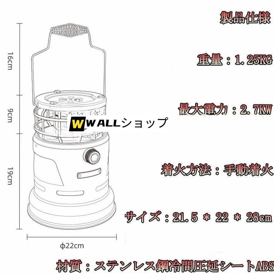 【 商品の仕様】サイズ21.5x22x28cm 重さ1.25kg 素材:430ステンレス鋼 耐重量20kg 加熱効率2.7kw 470g燃料満タンの場合、約4-5時間使用できます。