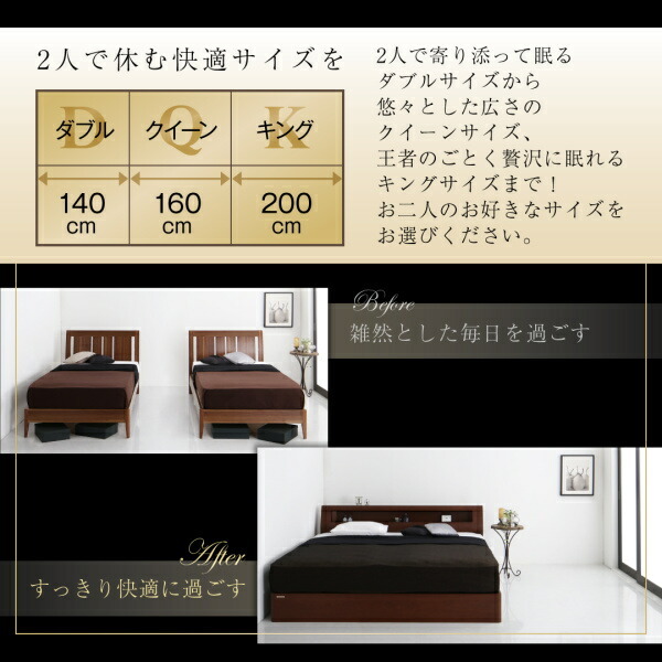 高級ウォルナット材ワイドサイズ収納ベッド ベッドフレームのみ ライトタイプ ダブル
