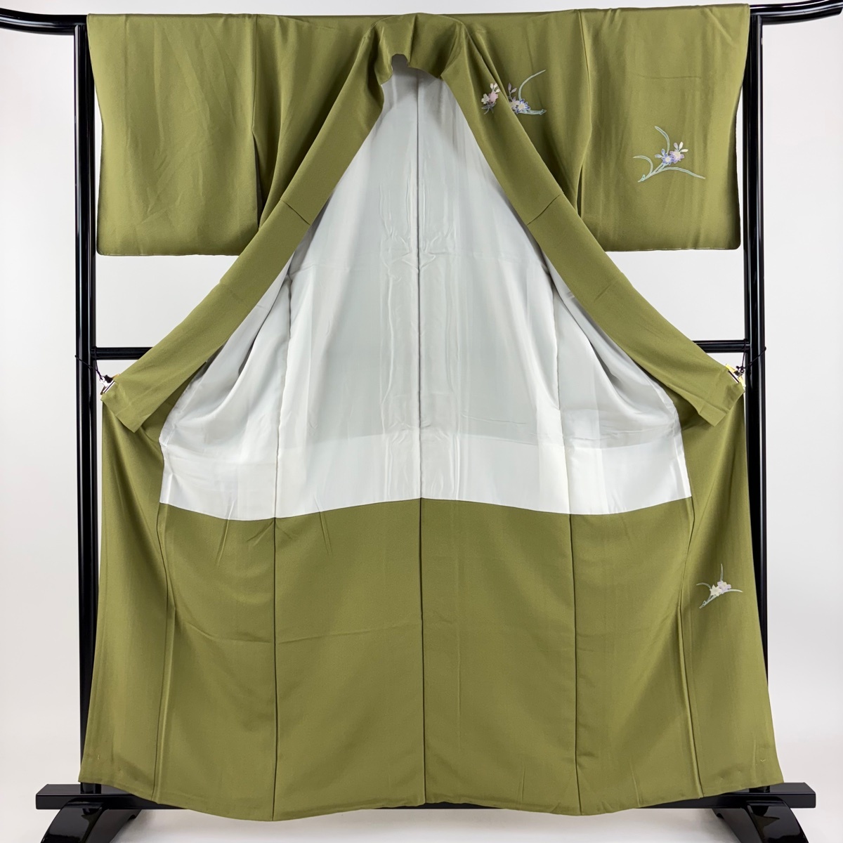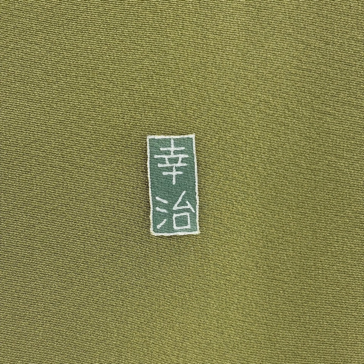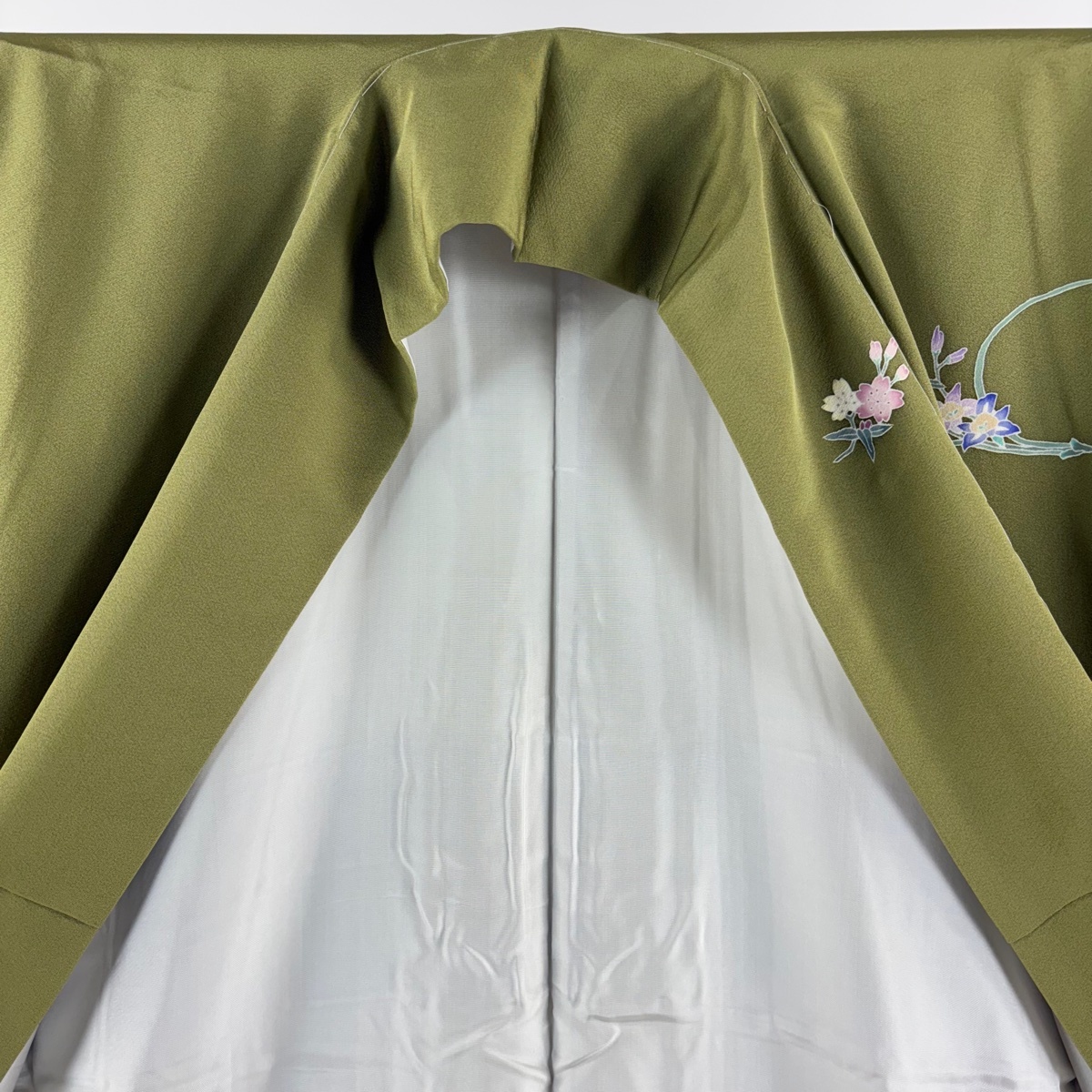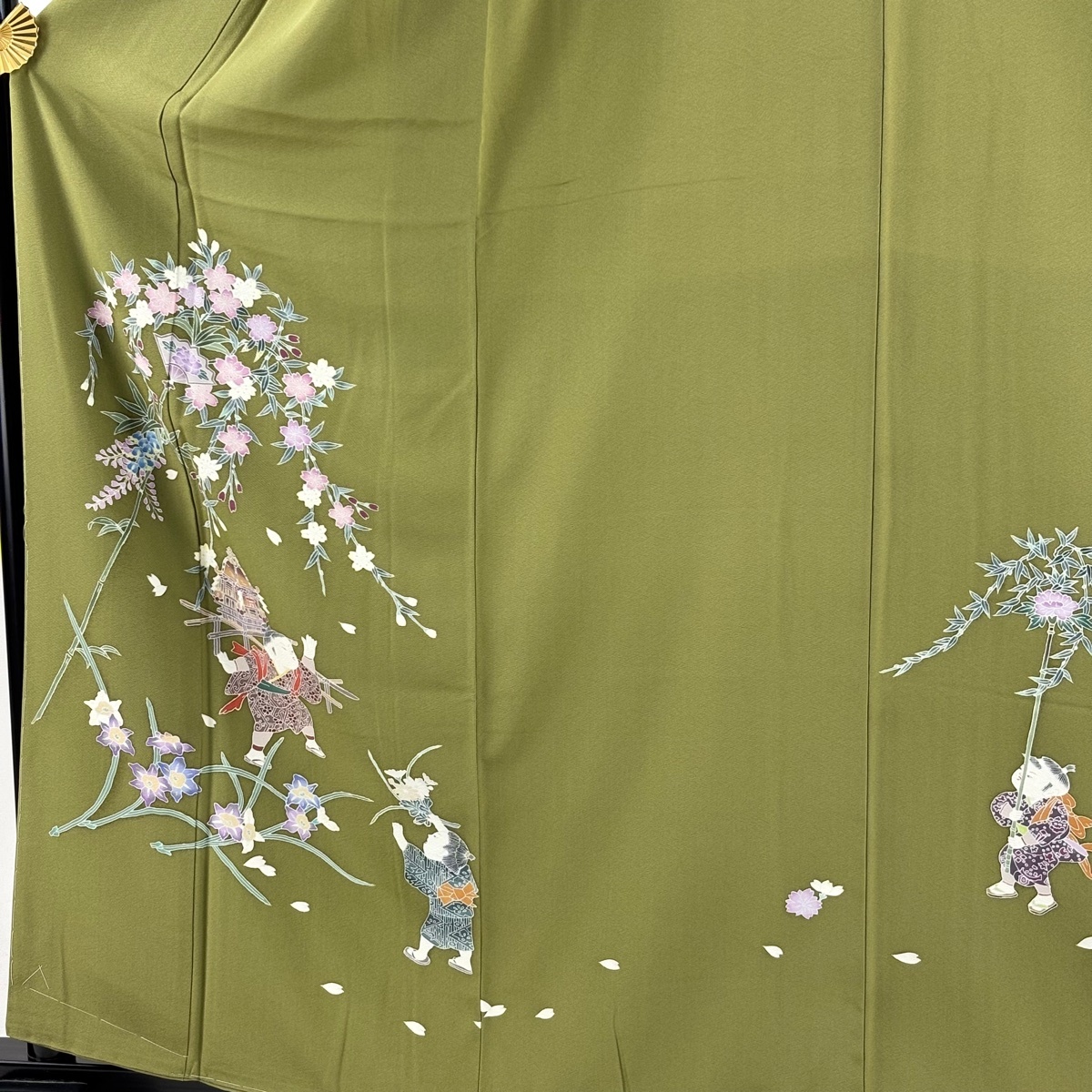 | 付下げ 美品 逸品 岡本幸治 落款 やまと 童 神輿 鶯色 袷 身丈160.5 裄丈64 M 正絹 【中古】 |