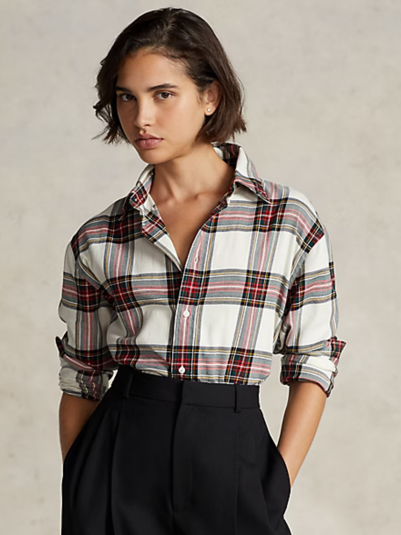 美品 POLO RALPH LAUREN ポロ・ラルフローレン 22AW リラックスフィット コットンフランネル タータンチェックシャツ L レディース SSM5777