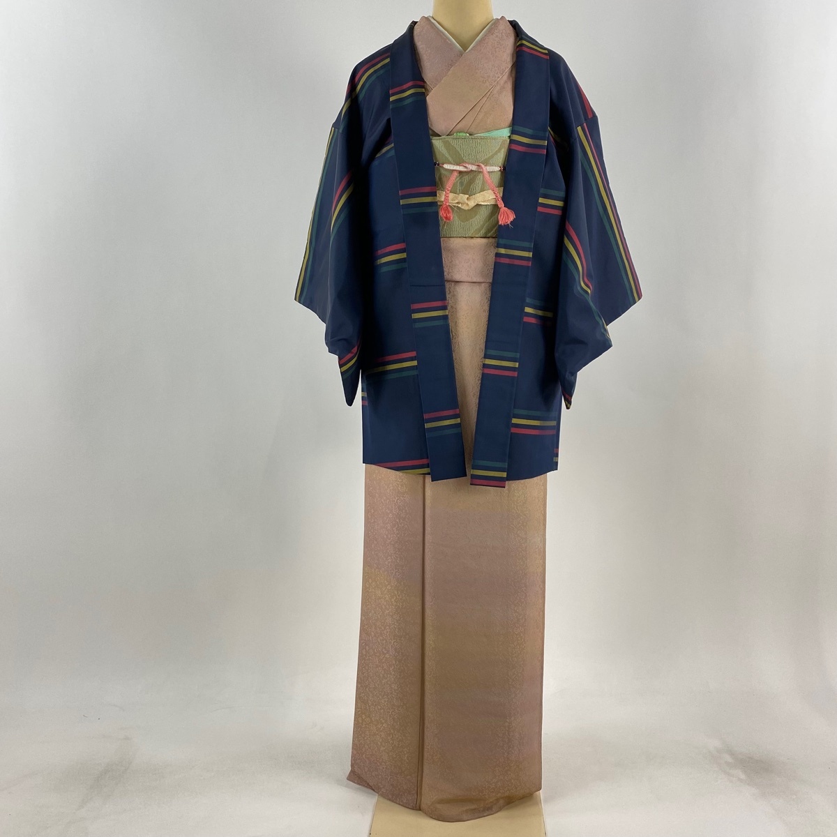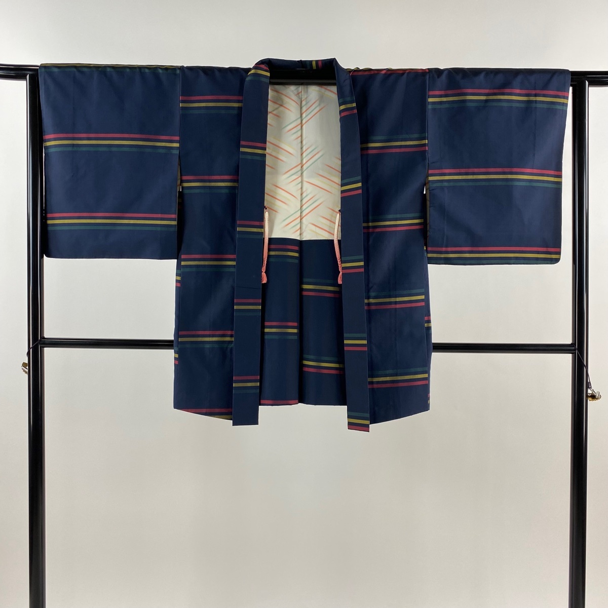 | 羽織 美品 秀品 証紙 大島紬地 縞 紺色 身丈82 裄丈63.5 S 正絹 【中古】 |