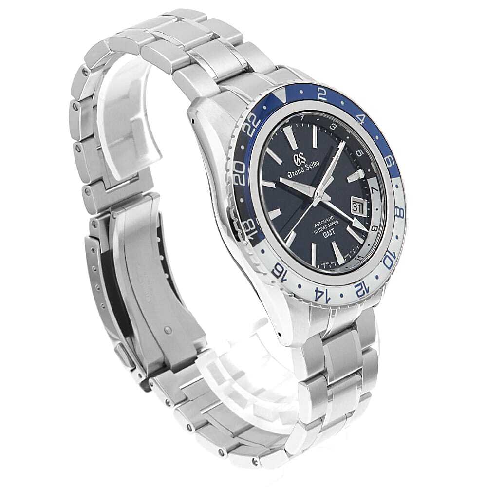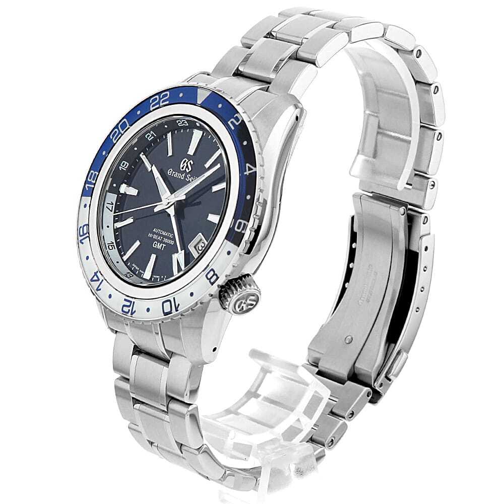 モデル情報 | グランドセイコーの名機「キャリバー9S」をベースに、毎秒10振動へと高めることで精度の安定性をさらに追求し、GMT機能を加えた「キャリバー9S86」を搭載した2020年発表のマスターショップ限定モデルです。深みのあるミッドナイトブルーのダイヤルに、鮮やかな白と青のベゼルが組み合わさり、上品さと精緻さを兼ね備えた表情を演出します。パワーリザーブは約55時間、20気圧防水という高い実用性も魅力の一本です。 |