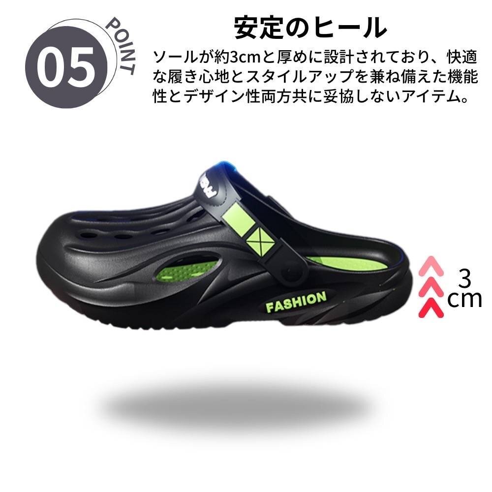 2WAYサンダル メンズ クロッグサンダル サボサンダル 軽量 つっかけ 前閉じ スポーツサンダル グリーン 25.0-25.5