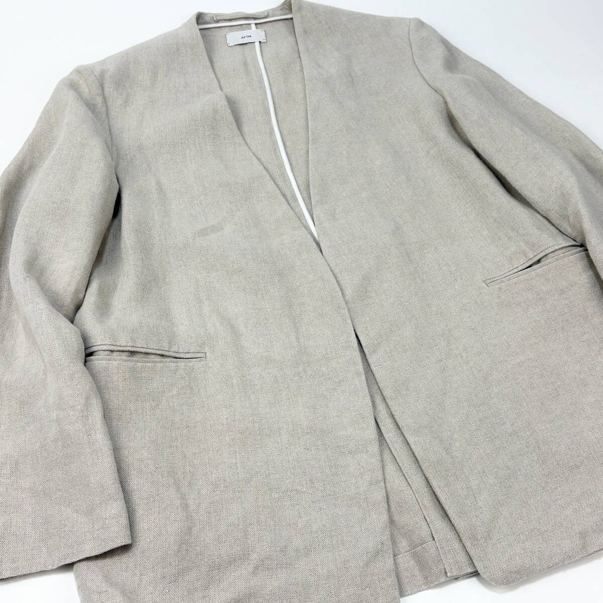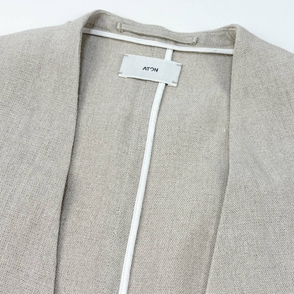 美品 ATON エイトン 23SS LINEN OXFORD NO COLLAR JACKET リネンオックスフォード ノーカラージャケット JKAGSM0207 02 ナチュラル SSM5794