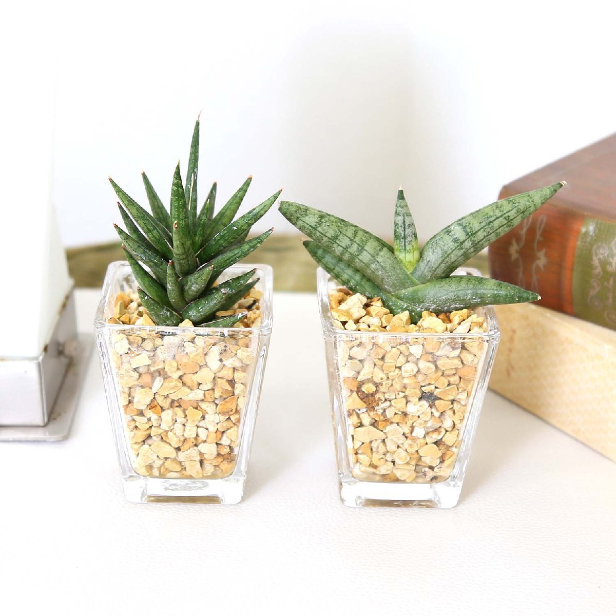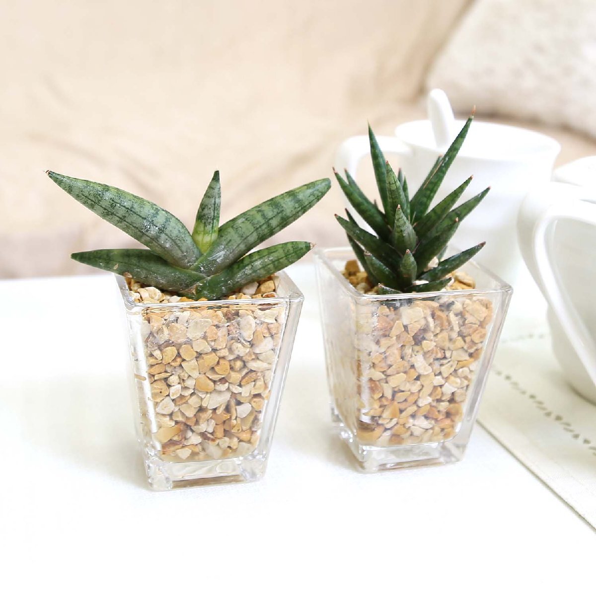 品種 | ★サンスベリア フランシーを1鉢:葉の縞模様(しまもよう)も美しく、樹形もスタイリッシュで珍しい品種です。細く尖った筒のような葉をしていて、密集して生えるサンスベリアです。 ★サンスベリア ボンセレンシスを1鉢:希少品種のサンスベリアで、扇状に広がる樹形と丸く太った棒状の葉が特徴的です。縞模様も美しく、こちらも店頭ではなかなか見かけないサンスベリアです。 |