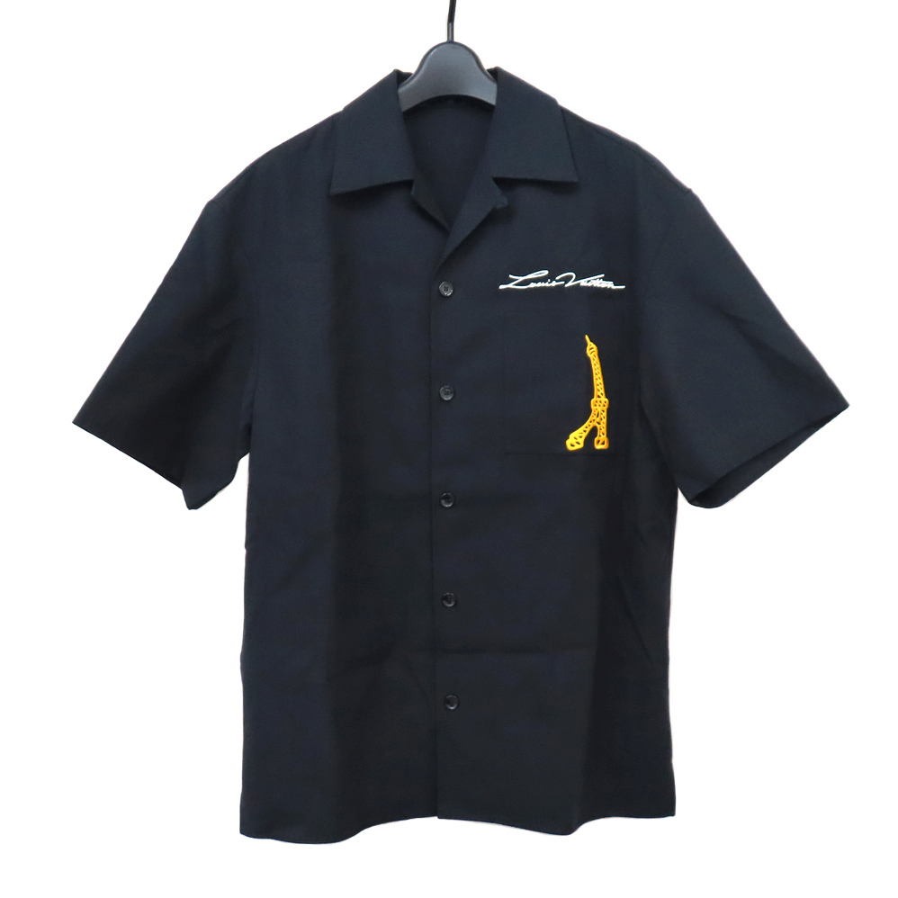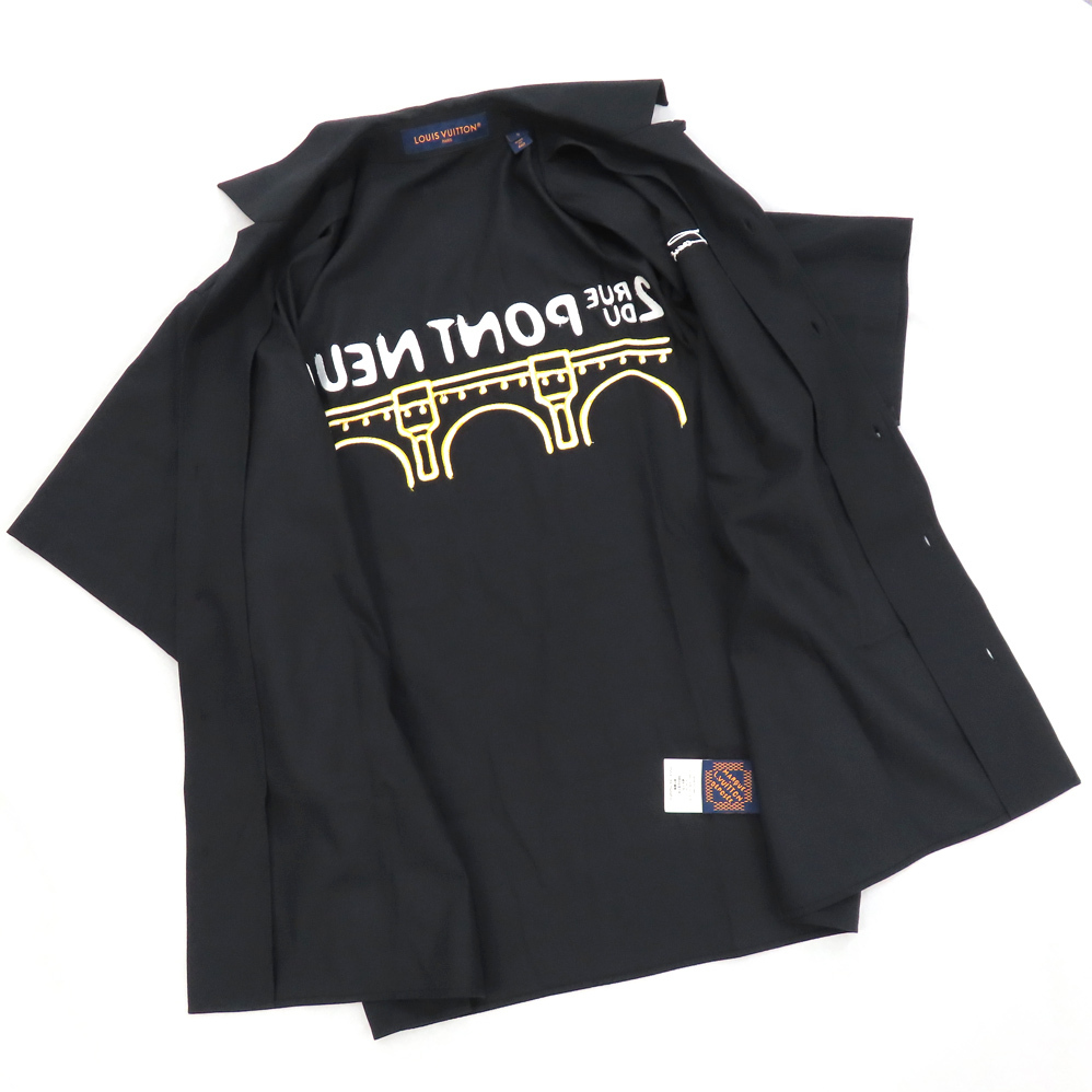 【名古屋】ルイヴィトン ショートスリーブコットンシャツ 1AFJHO S ブラック エッフェル ポンヌフ アパレル メンズ
