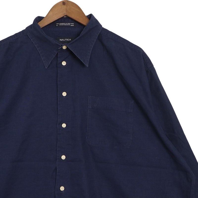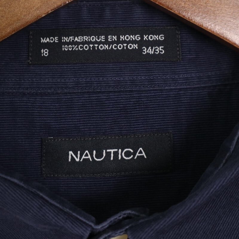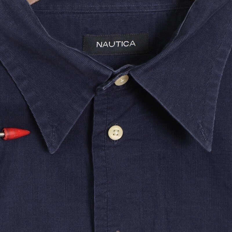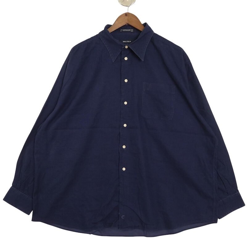 ノーティカ 細畝 長袖コーデュロイシャツ 大きいサイズ古着 メンズUS-2XLサイズ 無地 ネイビー系 sc-0691