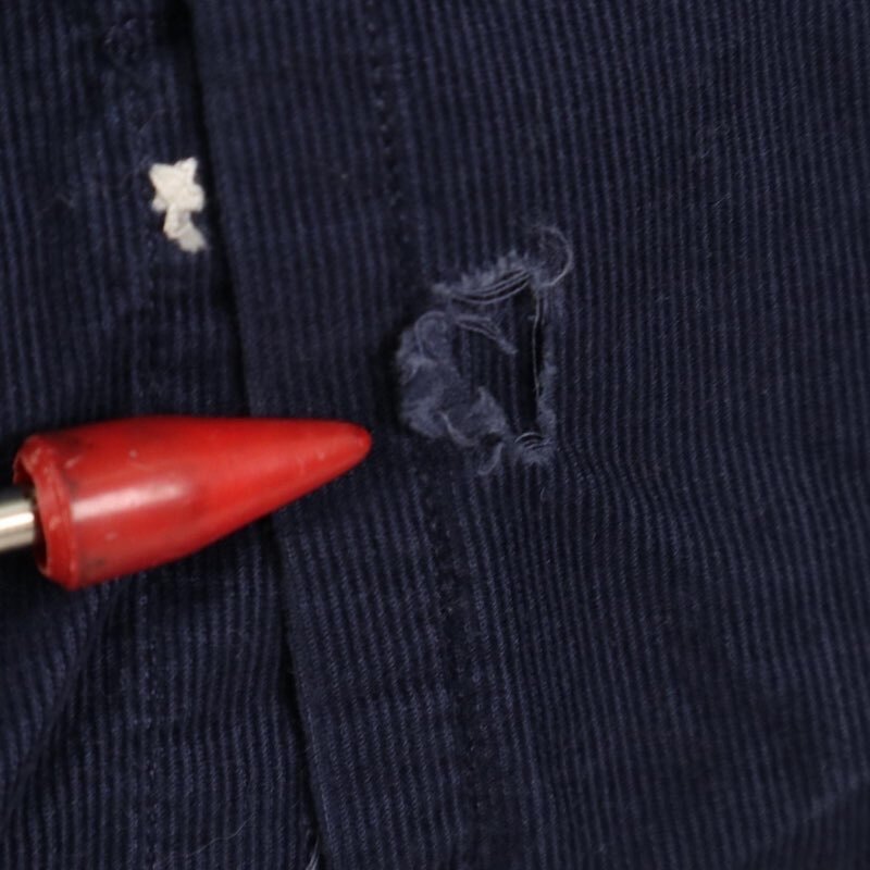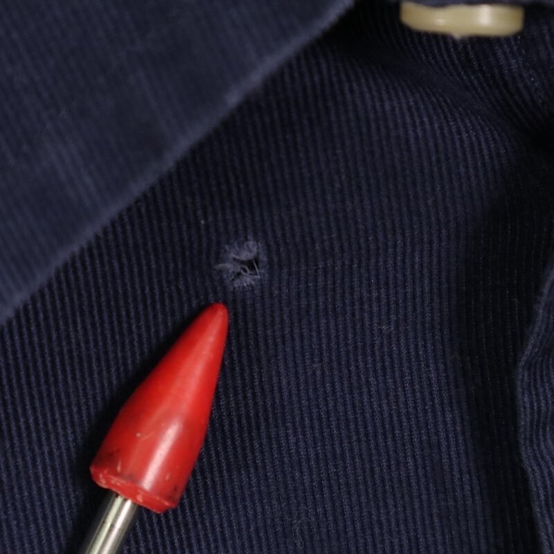 数ヶ所に穴、襟のボタン二点の欠品がございます。着用に問題はございません。
