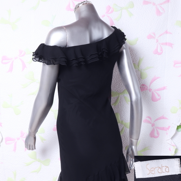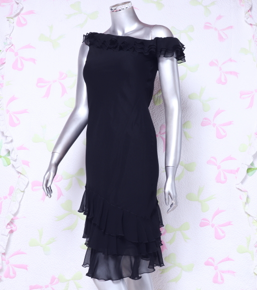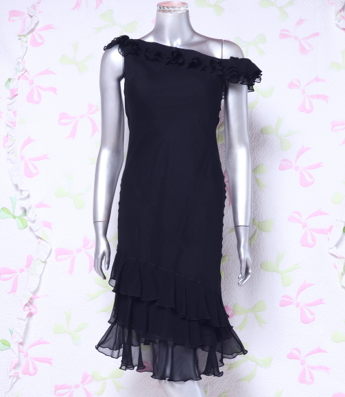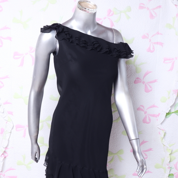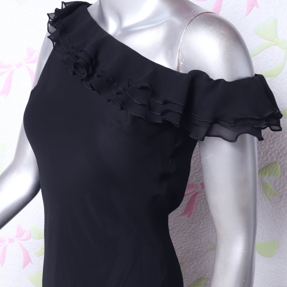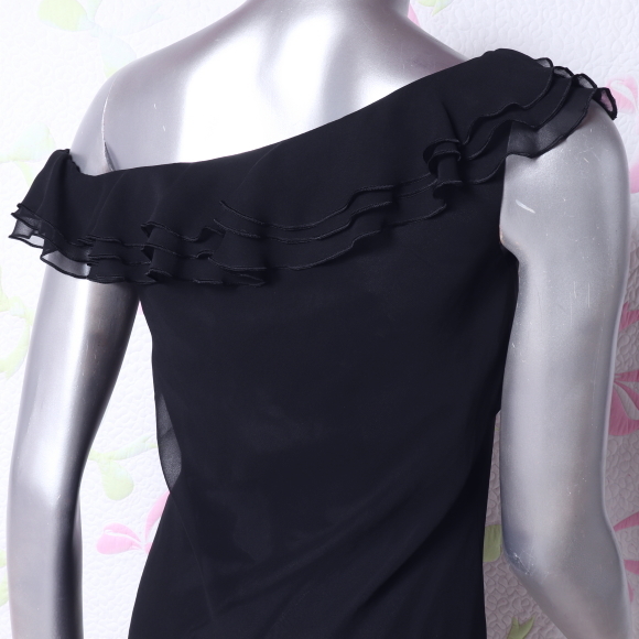 備考:シフォン生地と裏生地使用・バイヤスカットの為少し伸縮性有り・左肩部分にゴム使用・裾部分ティアード・ファスナーのないタイプです。