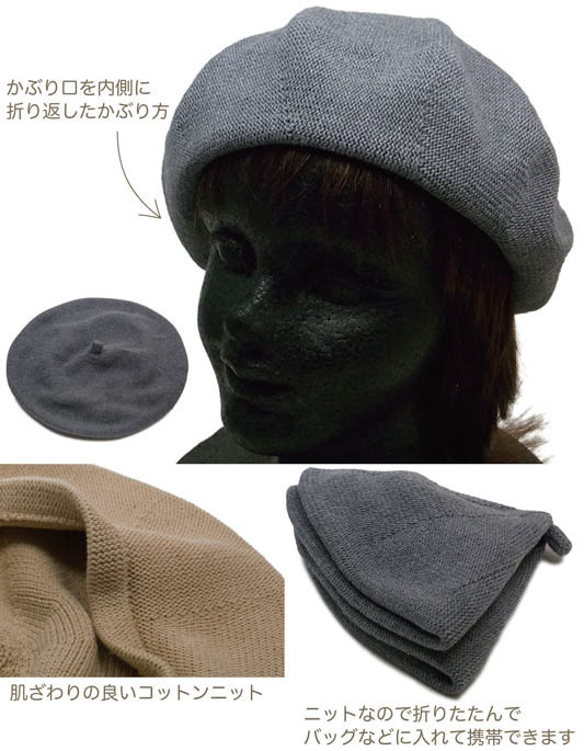 ・さらっとした触り心地のコットンニットベレーです。シンプルなデザインで合わせやすくオールシーズンご活用いただけます。