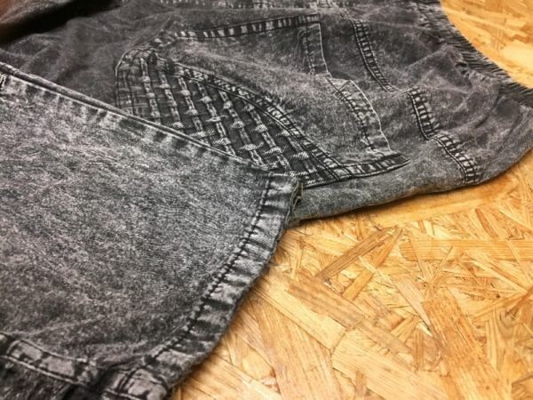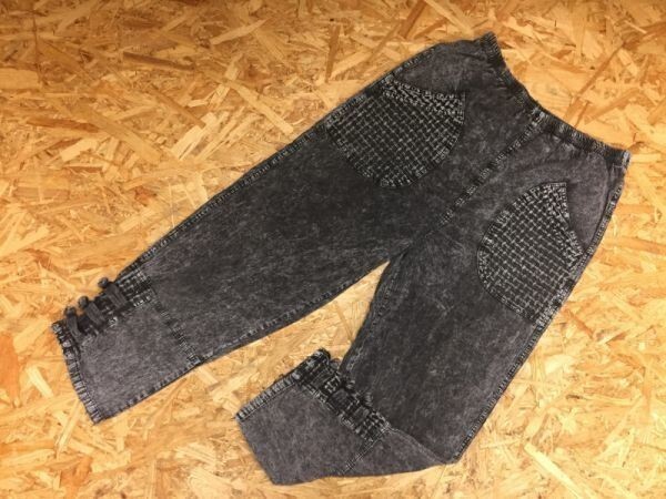 ノーブランド レトロ テーパード 裾装飾 デニム風プリント 3D イージースラックスパンツ ボトムス レディース コットン100% グレー です。