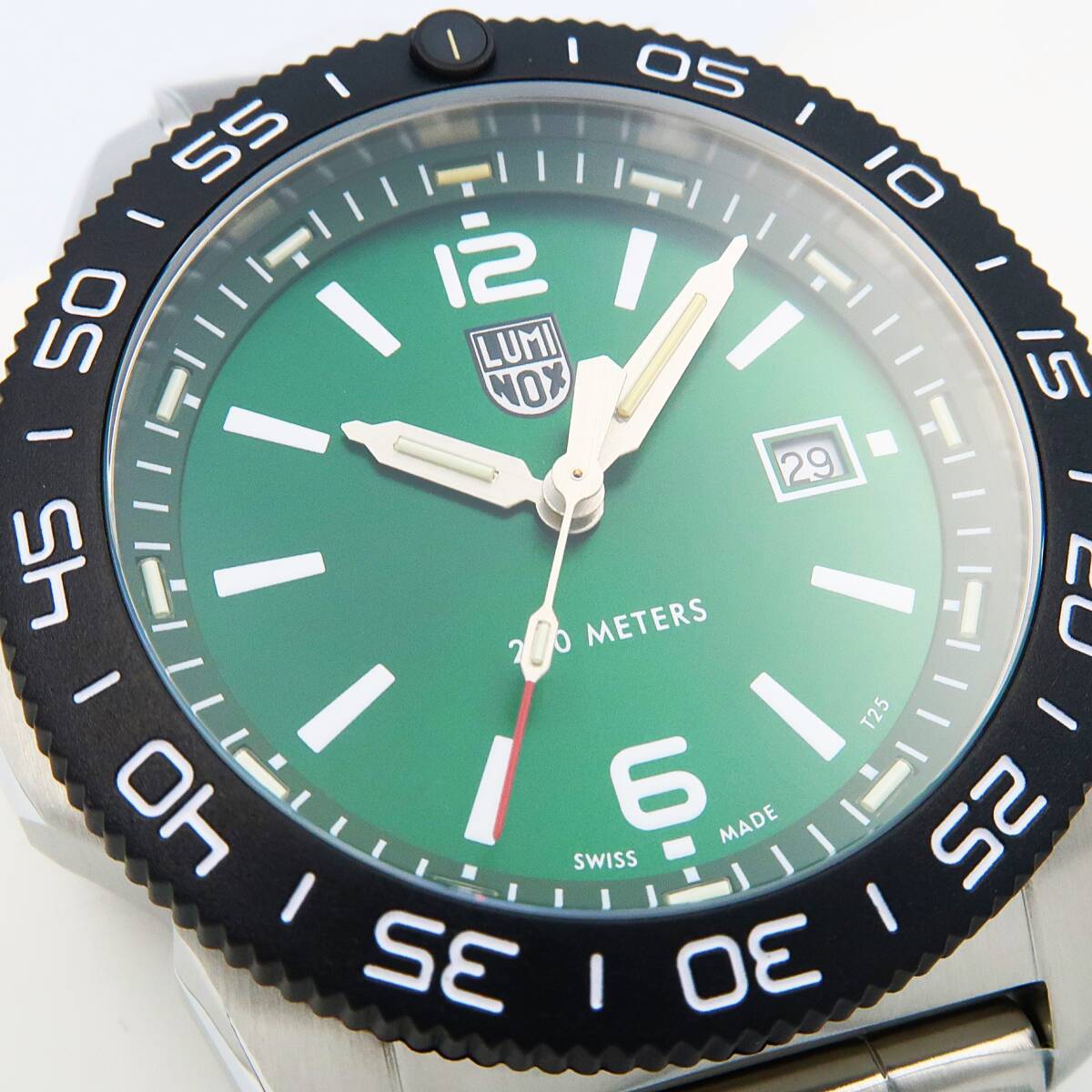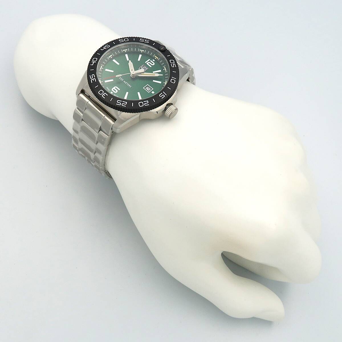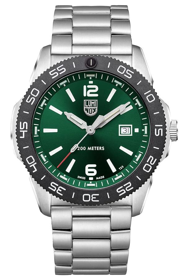 44mmケース径とグリーン文字盤がオシャレな『PACIFIC DIVER』シリーズの1本。ルミノックスの発祥地であり、米海軍基地も存在するカリフォルニア州が面する「太平洋」の名を冠したダイバーズウォッチ。