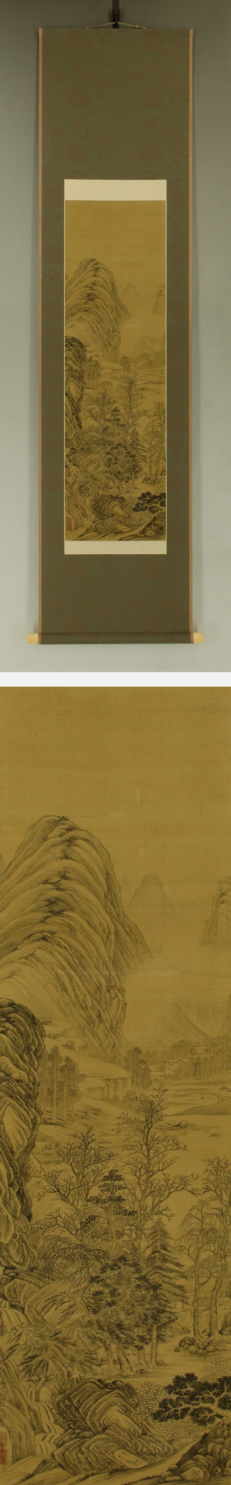 | №2412028 名品【真作】中林竹洞【暮古山水】◆絹本◆鉄斎識箱◆改装済掛軸 | |