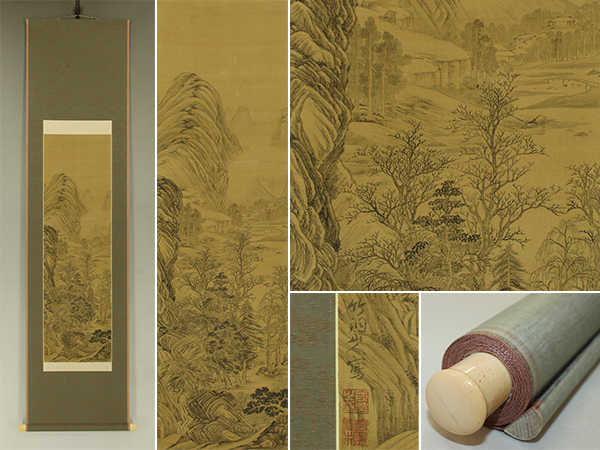 | №2412028 名品【真作】中林竹洞【暮古山水】◆絹本◆鉄斎識箱◆改装済掛軸 | |