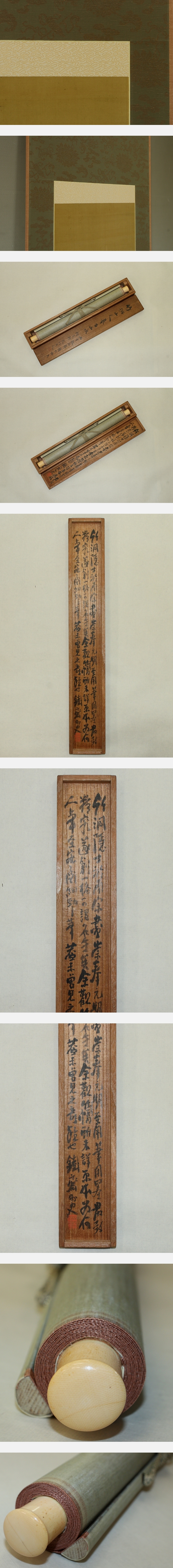 中林竹洞 なかばやし-ちくどう(1776-1853) 江戸後期の画家。尾張生。名は成昌、字は伯明、別号に沖澹痴翁・江東山隠士。 医師中林玄棟の子。山田宮常・神谷天遊に南画を学び、のち上洛して大成した。 山水花卉を能くし、特に梅竹に優れた。 嘉永6年(1853)歿、78才。 本紙は、染み痕、ヤケがあります。 表装は、良好です。軸先にヒビがあります。 【サイズ】 作品 横約25.5cm×縦約86.5cm 表装 横約39cm×縦約155cm |